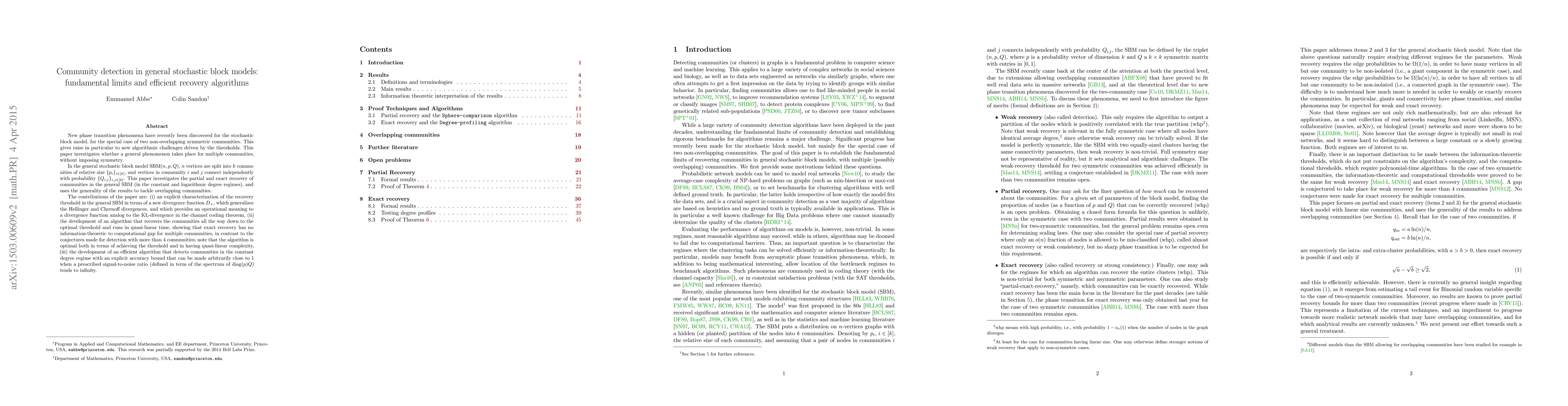 New phase transition phenomena have recently been discovered for the stochastic block model, for the special case of two non-overlapping symmetric communities. This gives raise in particular to new algorithmic challenges driven by the thresholds. This paper investigates whether a general phenomenon takes place for multiple communities, without imposing symmetry. In the general stochastic block model $\text{SBM}(n,p,Q)$, $n$ vertices are split into $k$ communities of relative size $\{p_i\}_{i \in [k]}$, and vertices in community $i$ and $j$ connect independently with probability $\{Q_{i,j}\}_{i,j \in [k]}$. This paper investigates the partial and exact recovery of communities in the general SBM (in the constant and logarithmic degree regimes), and uses the generality of the results to tackle overlapping communities. The contributions of the paper are: (i) an explicit characterization of the recovery threshold in the general SBM in terms of a new divergence function $D_+$, which generalizes the Hellinger and Chernoff divergences, and which provides an operational meaning to a divergence function analog to the KL-divergence in the channel coding theorem, (ii) the development of an algorithm that recovers the communities all the way down to the optimal threshold and runs in quasi-linear time, showing that exact recovery has no information-theoretic to computational gap for multiple communities, in contrast to the conjectures made for detection with more than 4 communities; note that the algorithm is optimal both in terms of achieving the threshold and in having quasi-linear complexity, (iii) the development of an efficient algorithm that detects communities in the constant degree regime with an explicit accuracy bound that can be made arbitrarily close to 1 when a prescribed signal-to-noise ratio (defined in term of the spectrum of $\diag(p)Q$) tends to infinity.