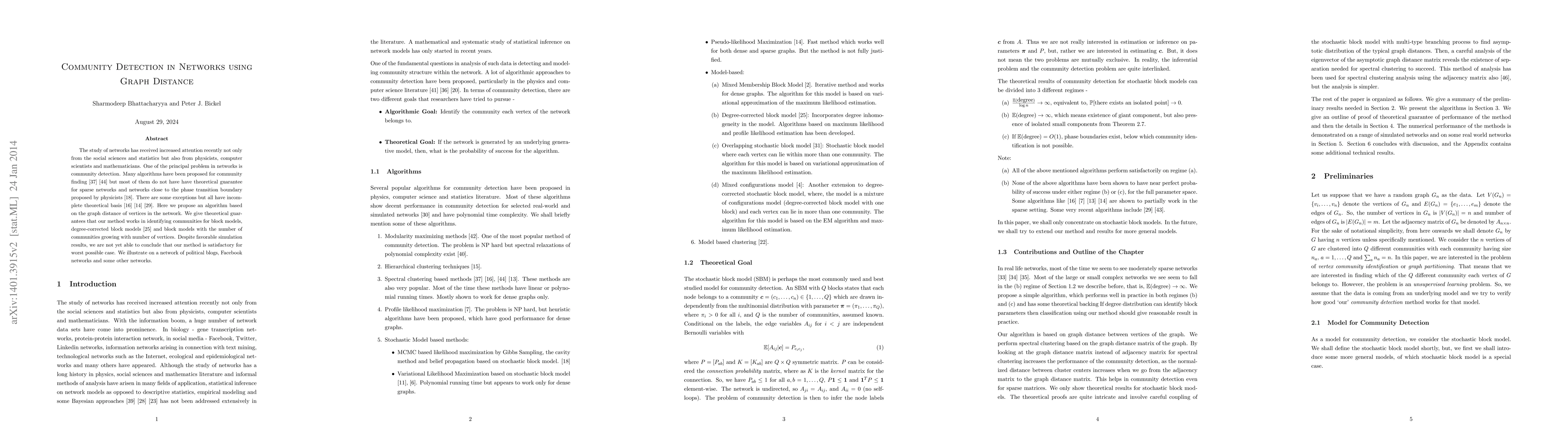 This paper proposes a new community detection algorithm based on graph distance, providing theoretical guarantees for its effectiveness in sparse networks and near phase transition boundaries. While simulation results are promising, the method's performance in the worst-case scenario remains uncertain.