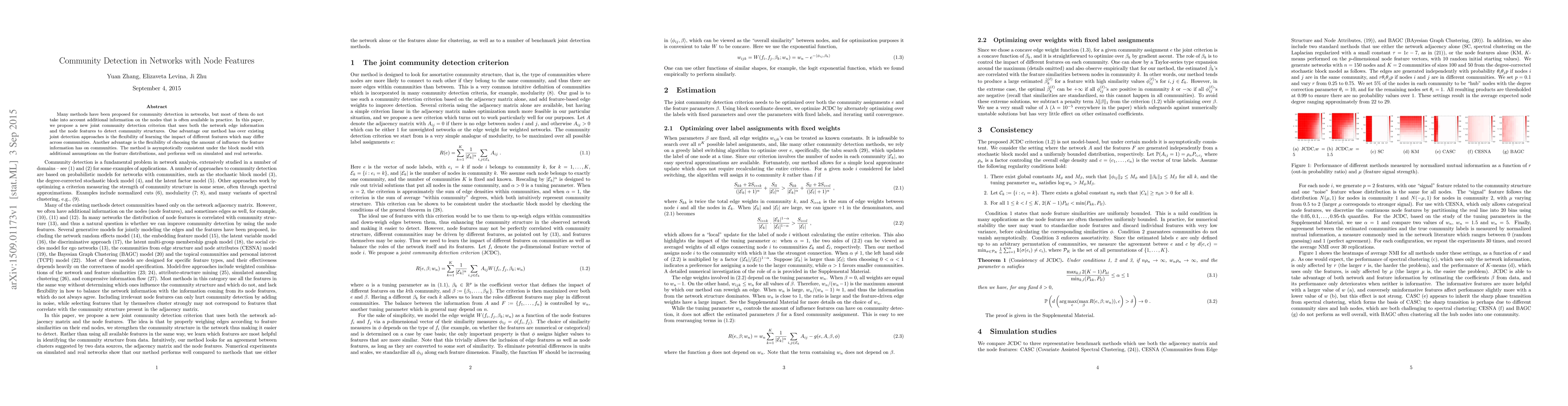 Many methods have been proposed for community detection in networks, but most of them do not take into account additional information on the nodes that is often available in practice. In this paper, we propose a new joint community detection criterion that uses both the network edge information and the node features to detect community structures. One advantage our method has over existing joint detection approaches is the flexibility of learning the impact of different features which may differ across communities. Another advantage is the flexibility of choosing the amount of influence the feature information has on communities. The method is asymptotically consistent under the block model with additional assumptions on the feature distributions, and performs well on simulated and real networks.