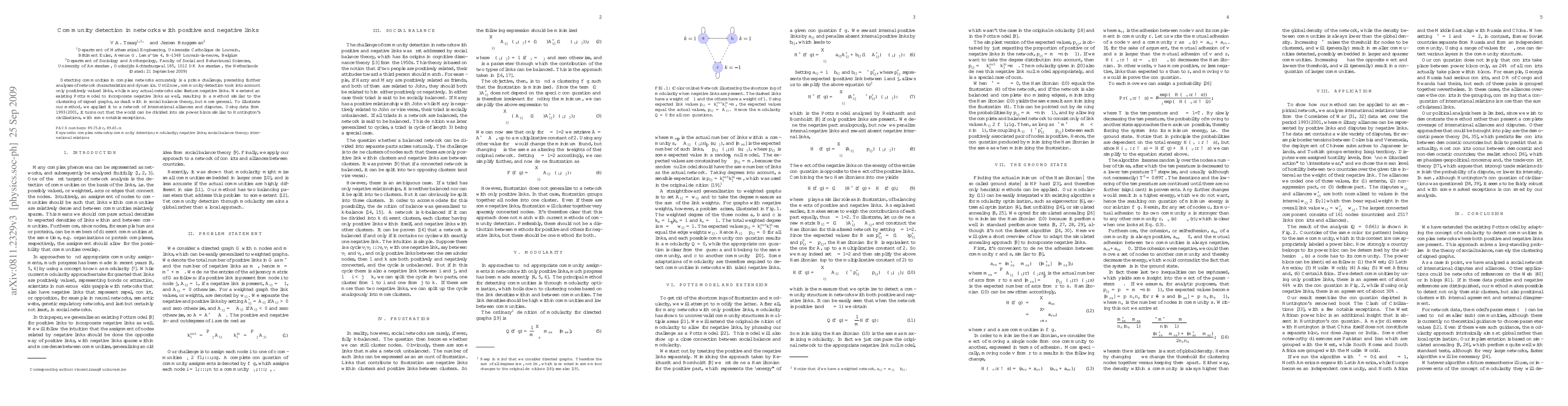 This paper proposes an extended Potts model to detect communities in networks with both positive and negative links, applicable to signed graphs. The method was tested on a network of international alliances and disputes, revealing six power blocs similar to Huntington's civilizations.