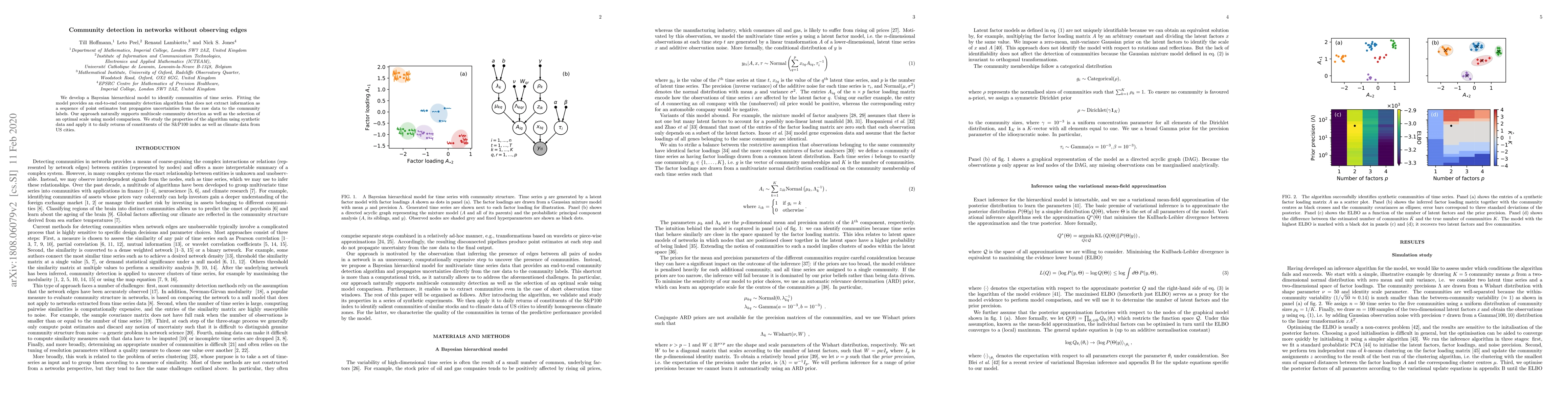 We develop a Bayesian hierarchical model to identify communities in networks for which we do not observe the edges directly, but instead observe a series of interdependent signals for each of the nodes. Fitting the model provides an end-to-end community detection algorithm that does not extract information as a sequence of point estimates but propagates uncertainties from the raw data to the community labels. Our approach naturally supports multiscale community detection as well as the selection of an optimal scale using model comparison. We study the properties of the algorithm using synthetic data and apply it to daily returns of constituents of the S&P100 index as well as climate data from US cities.