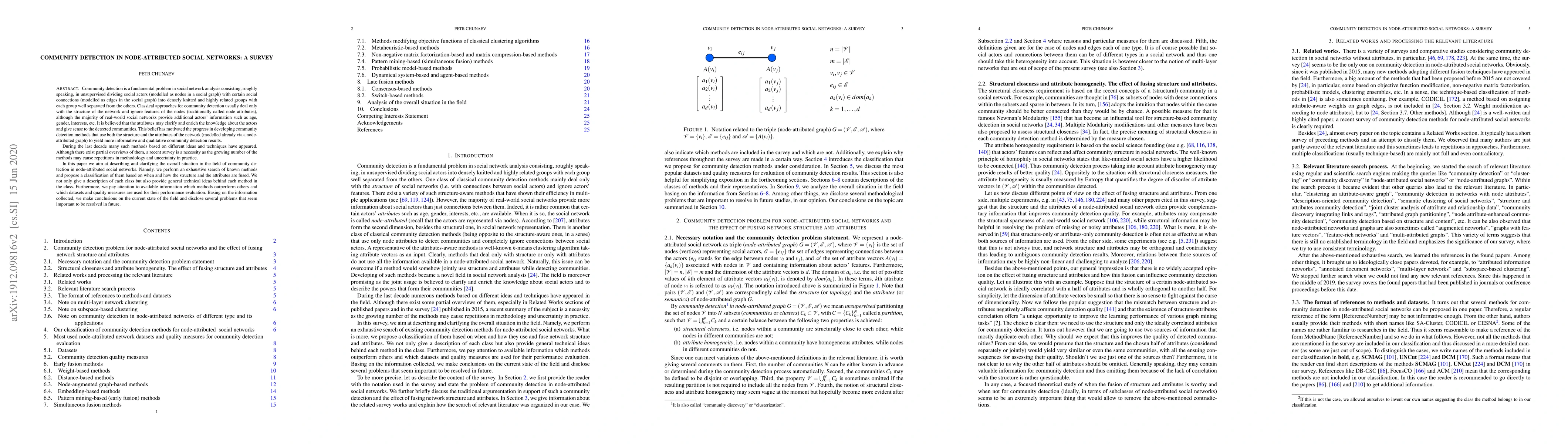 This paper surveys community detection methods in node-attributed social networks, classifying them based on how they integrate network structure and node attributes. It highlights the strengths and weaknesses of various methods and identifies key areas for future research.