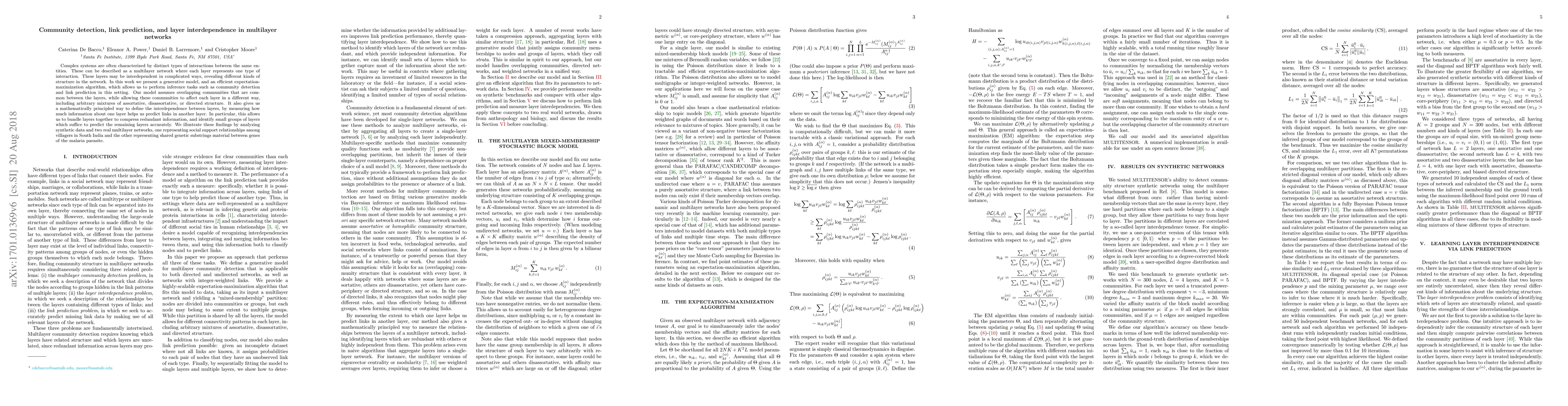 The paper introduces a scalable expectation-maximization algorithm for inferring community structures and performing link prediction in multilayer networks, incorporating a measure of interlayer dependencies.