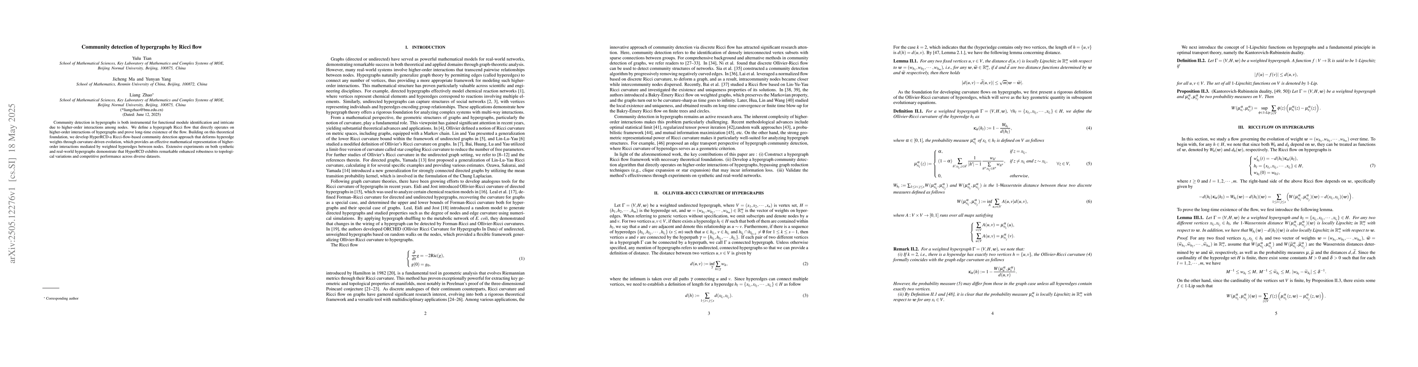 The research defines a hypergraph Ricci flow that operates directly on higher-order interactions, proving its long-time existence. It then develops HyperRCD, a Ricci-flow-based community detection approach that deforms hyperedge weights via curvature-driven evolution, representing higher-order interactions mediated by weighted hyperedges.