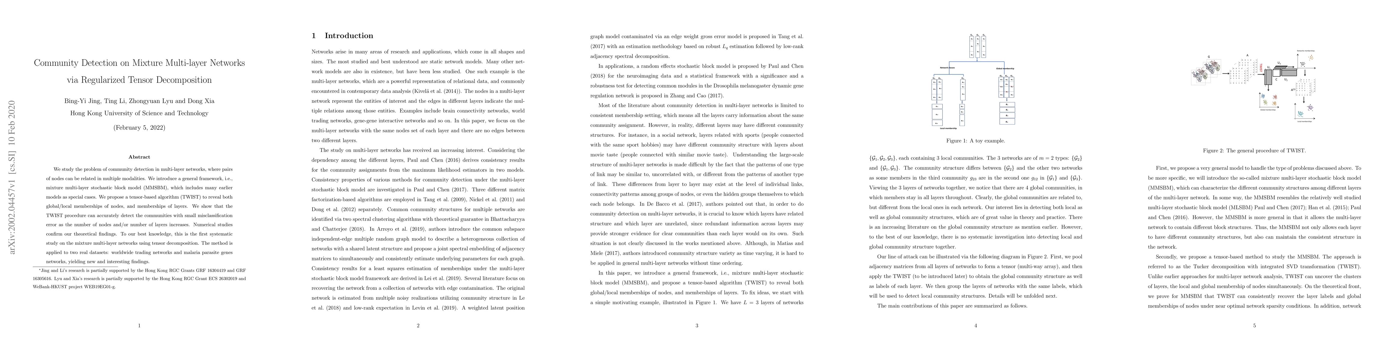 This paper proposes a novel tensor-based algorithm called TWIST for community detection in mixture multi-layer networks, introducing a framework called MMSBM. The method accurately detects communities with minimal error, as demonstrated through theoretical analysis and real-world applications to trading and gene networks.