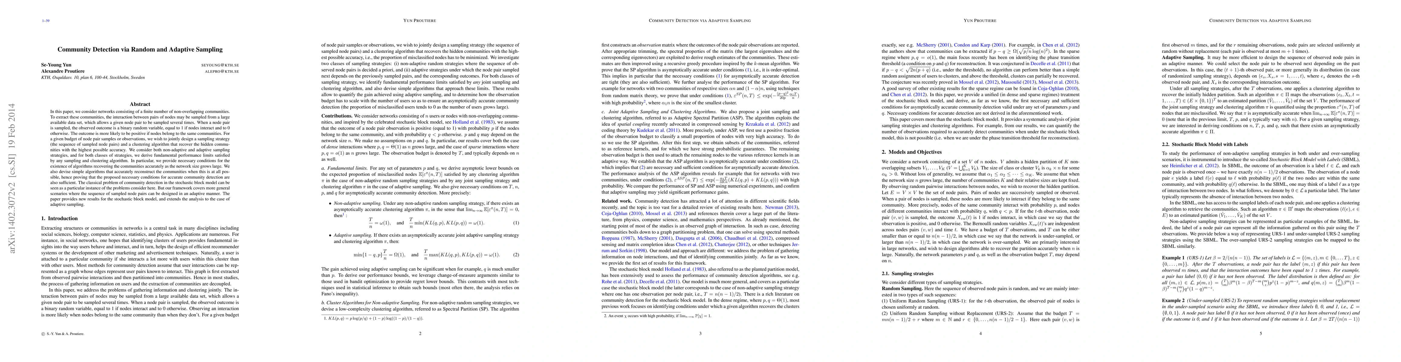 Researchers developed a framework for community detection in networks using random and adaptive sampling, providing necessary conditions for accurate recovery of hidden communities as network size grows large.