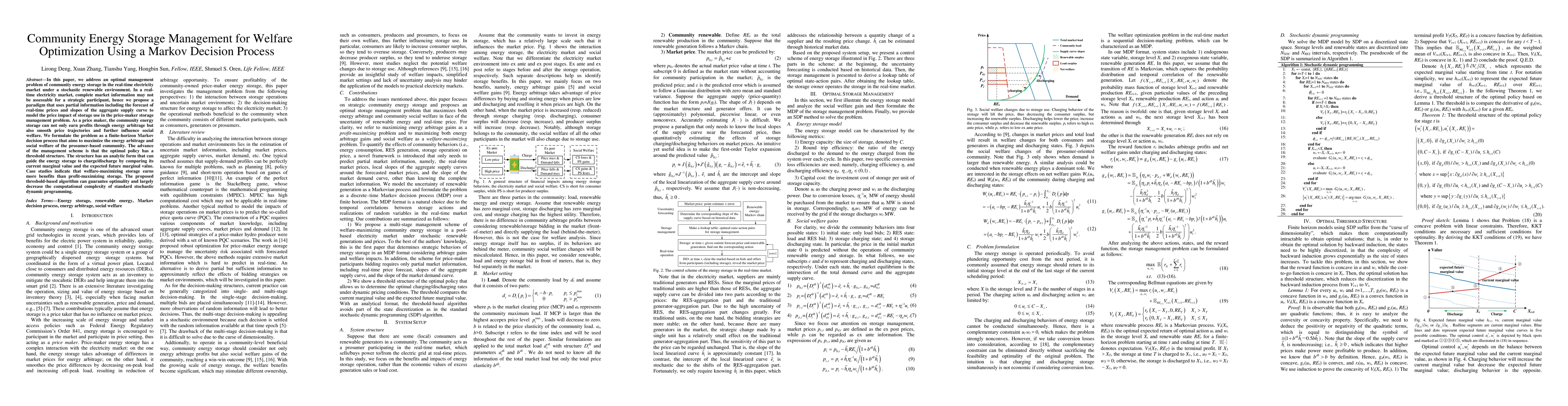 This paper proposes a Markov decision process for optimal management of community energy storage in real-time electricity markets, aiming to maximize both energy arbitrage and social welfare. The optimal policy exhibits a threshold structure, simplifying decision-making and reducing computational complexity, while demonstrating higher welfare benefits compared to profit-maximizing strategies.