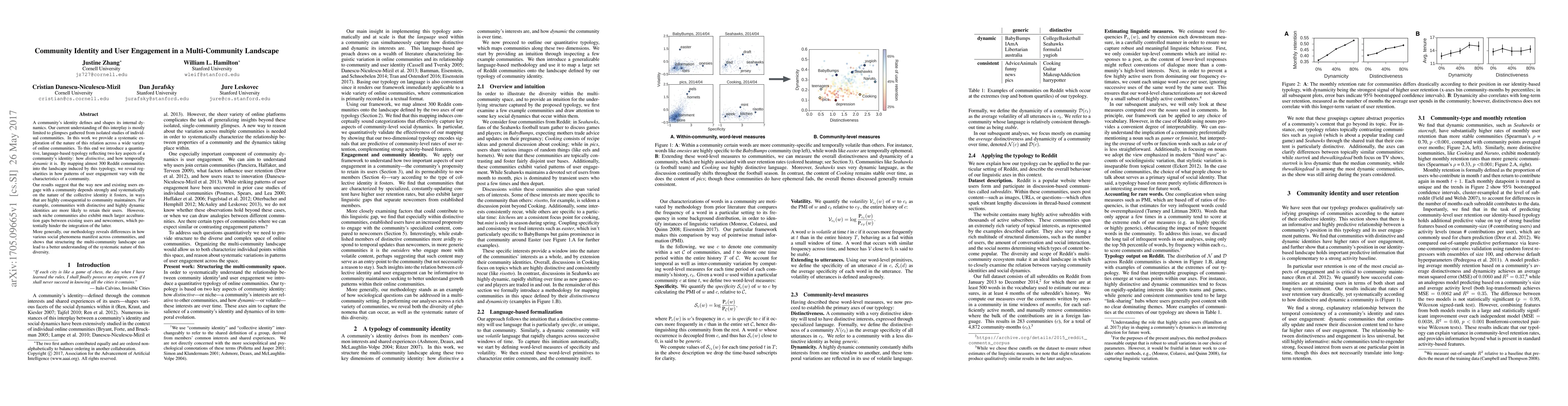 A community's identity defines and shapes its internal dynamics. Our current understanding of this interplay is mostly limited to glimpses gathered from isolated studies of individual communities. In this work we provide a systematic exploration of the nature of this relation across a wide variety of online communities. To this end we introduce a quantitative, language-based typology reflecting two key aspects of a community's identity: how distinctive, and how temporally dynamic it is. By mapping almost 300 Reddit communities into the landscape induced by this typology, we reveal regularities in how patterns of user engagement vary with the characteristics of a community. Our results suggest that the way new and existing users engage with a community depends strongly and systematically on the nature of the collective identity it fosters, in ways that are highly consequential to community maintainers. For example, communities with distinctive and highly dynamic identities are more likely to retain their users. However, such niche communities also exhibit much larger acculturation gaps between existing users and newcomers, which potentially hinder the integration of the latter. More generally, our methodology reveals differences in how various social phenomena manifest across communities, and shows that structuring the multi-community landscape can lead to a better understanding of the systematic nature of this diversity.