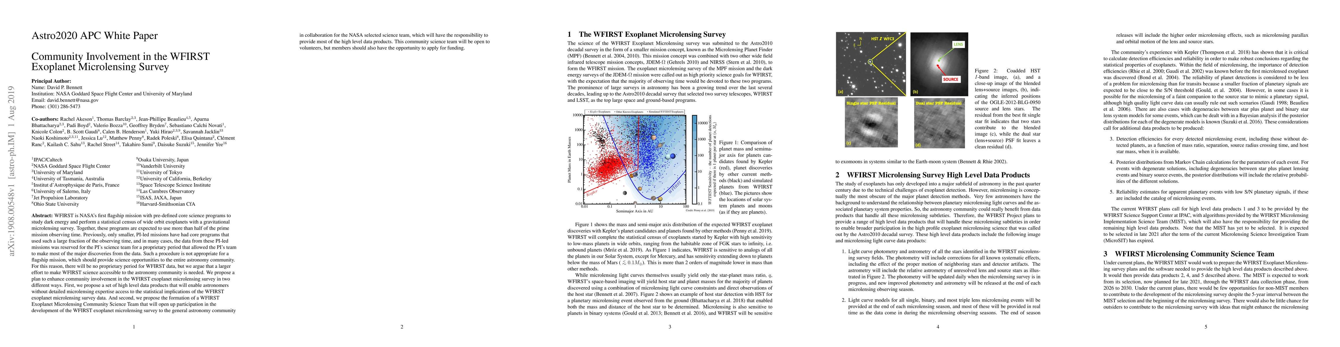 The WFIRST mission aims to study dark energy and conduct a microlensing survey for wide-orbit exoplanets, but seeks to avoid proprietary data periods. To enhance community involvement, a plan is proposed to provide high-level data products and form a WFIRST Exoplanet Microlensing Community Science Team for collaborative survey development.
