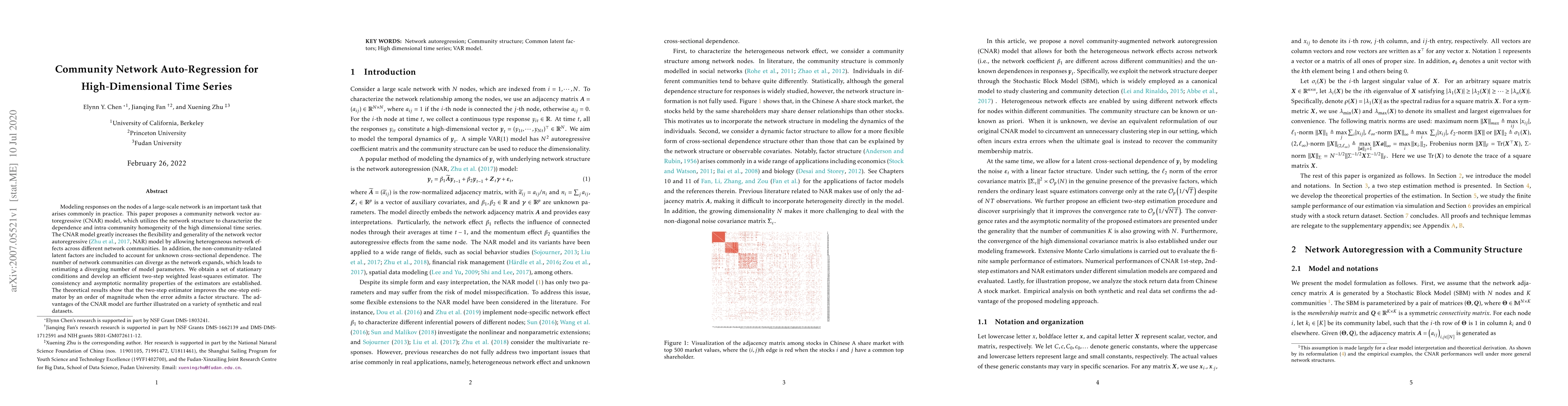 Modeling responses on the nodes of a large-scale network is an important task that arises commonly in practice. This paper proposes a community network vector autoregressive (CNAR) model, which utilizes the network structure to characterize the dependence and intra-community homogeneity of the high dimensional time series. The CNAR model greatly increases the flexibility and generality of the network vector autoregressive (Zhu et al, 2017, NAR) model by allowing heterogeneous network effects across different network communities. In addition, the non-community-related latent factors are included to account for unknown cross-sectional dependence. The number of network communities can diverge as the network expands, which leads to estimating a diverging number of model parameters. We obtain a set of stationary conditions and develop an efficient two-step weighted least-squares estimator. The consistency and asymptotic normality properties of the estimators are established. The theoretical results show that the two-step estimator improves the one-step estimator by an order of magnitude when the error admits a factor structure. The advantages of the CNAR model are further illustrated on a variety of synthetic and real datasets.