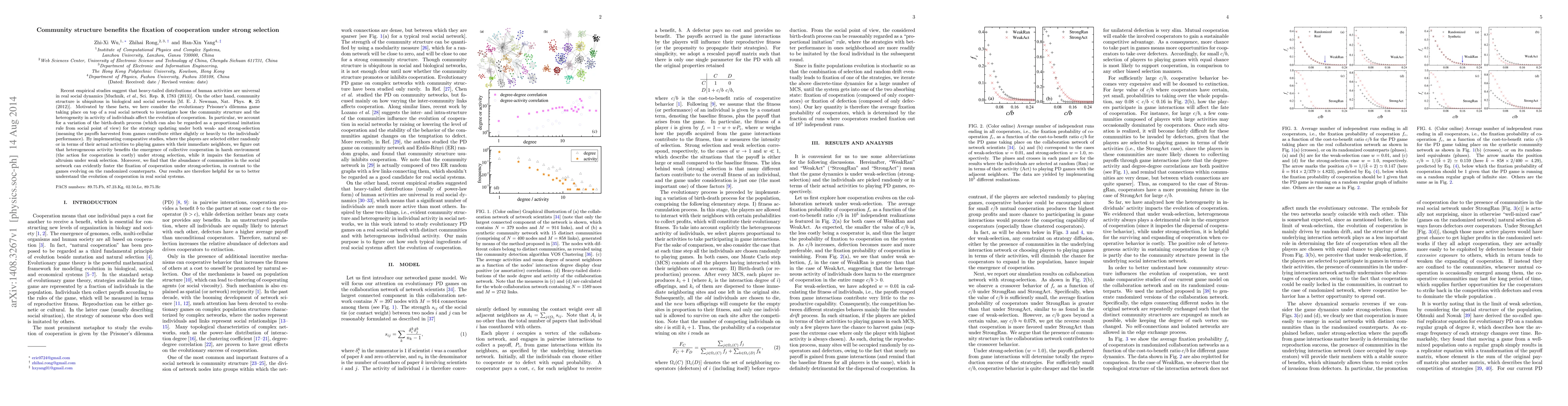 This paper investigates how community structure and individual activity heterogeneity in social networks influence the evolution of cooperation in the evolutionary Prisoner's dilemma game under varying selection strengths. It finds that heterogeneous activity promotes cooperation under strong selection, while community structure significantly enhances cooperation fixation in such environments.