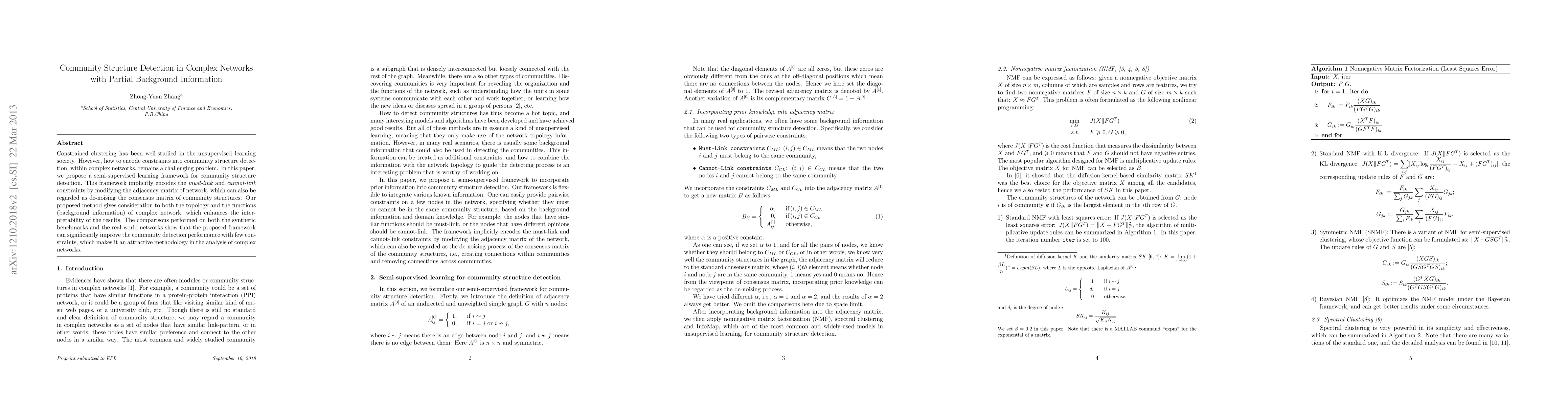 The paper proposes a semi-supervised learning framework for community structure detection in complex networks, incorporating must-link and cannot-link constraints by modifying the adjacency matrix.