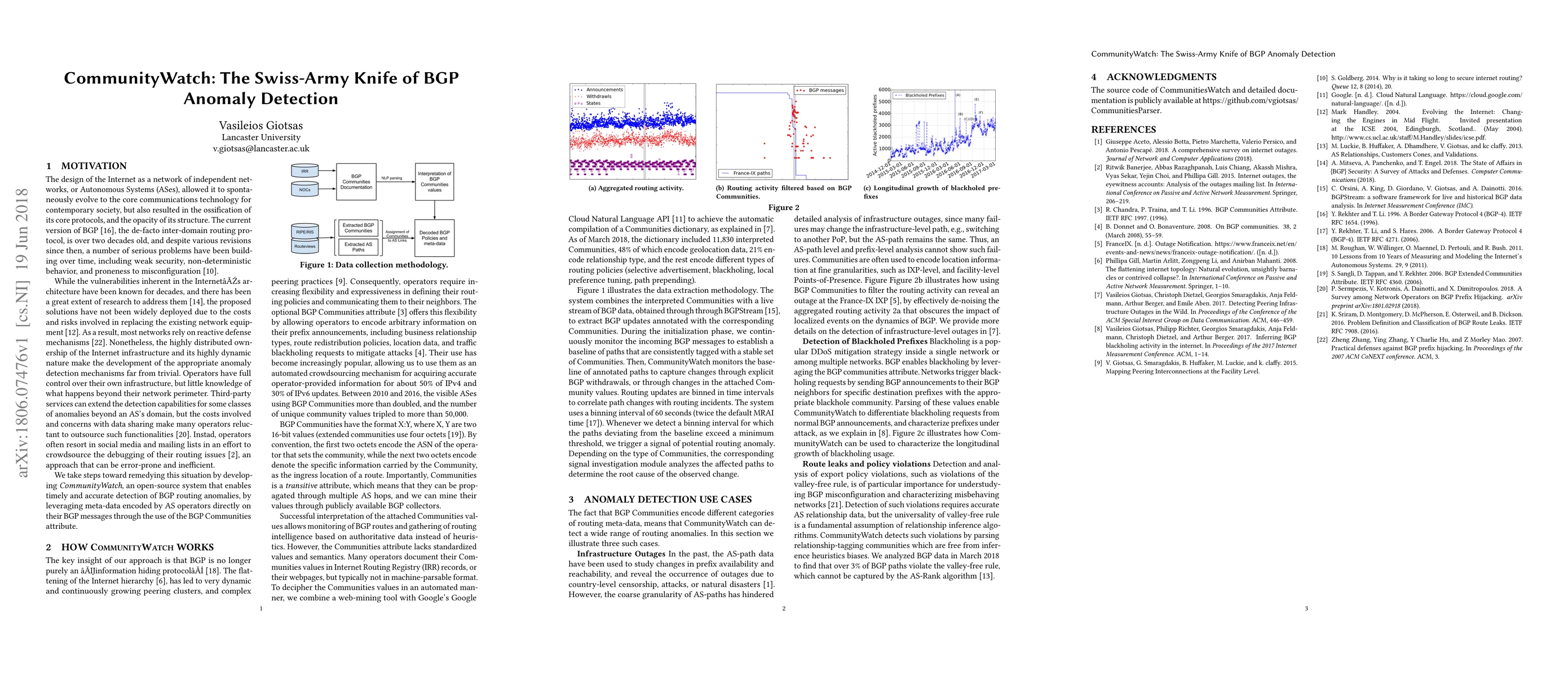 We present CommunityWatch, an open-source system that enables timely and accurate detection of BGP routing anomalies. CommunityWatch leverages meta-data encoded by AS operators on their advertised routes through the BGP Communities attribute. The BGP Communities values lack standardized semantics, offering the flexibility to attach a wide range of information, including AS relationships, location data, and route redistribution policies. Therefore, parsing and correlating Community values and their dynamics enables the detection and tracking of a variety of routing anomalies. We exhibit the efficacy of CommunityWatch through the detection of three different types of anomalies: infrastructure outages, route leaks, and traffic blackholing.
