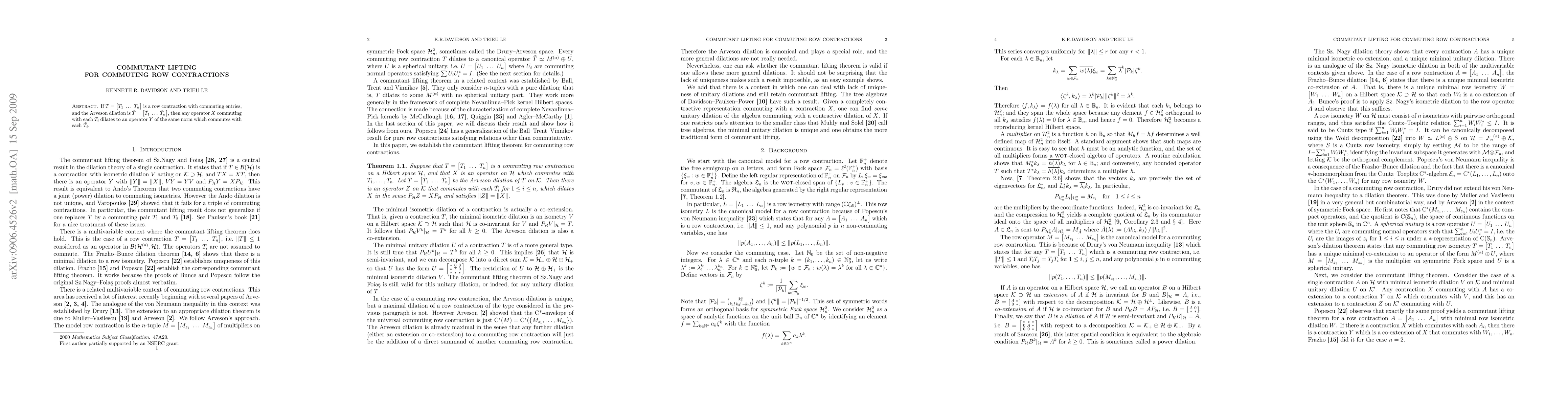 This paper explores the commutant lifting property for row contractions where each entry commutes with the others, showing that any operator commuting with each entry dilates to an operator of the same norm that commutes with the dilated entries.