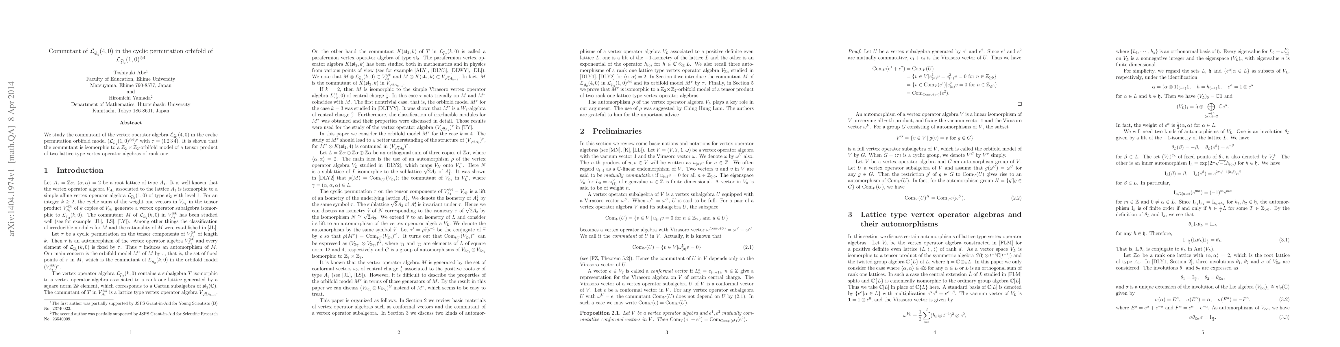 This paper investigates the commutant of the vertex operator algebra $\mathcal{L}_{\widehat{\mathfrak{sl}}_2}(4,0)$ in the cyclic permutation orbifold of $\mathcal{L}_{\widehat{\mathfrak{sl}}_2}(1,0)^{\otimes 4}$. The study reveals that the commutant is isomorphic to a ${\mathbb Z}_2\times{\mathbb Z}_2$-orbifold model of a tensor product of two rank one lattice vertex operator algebras.