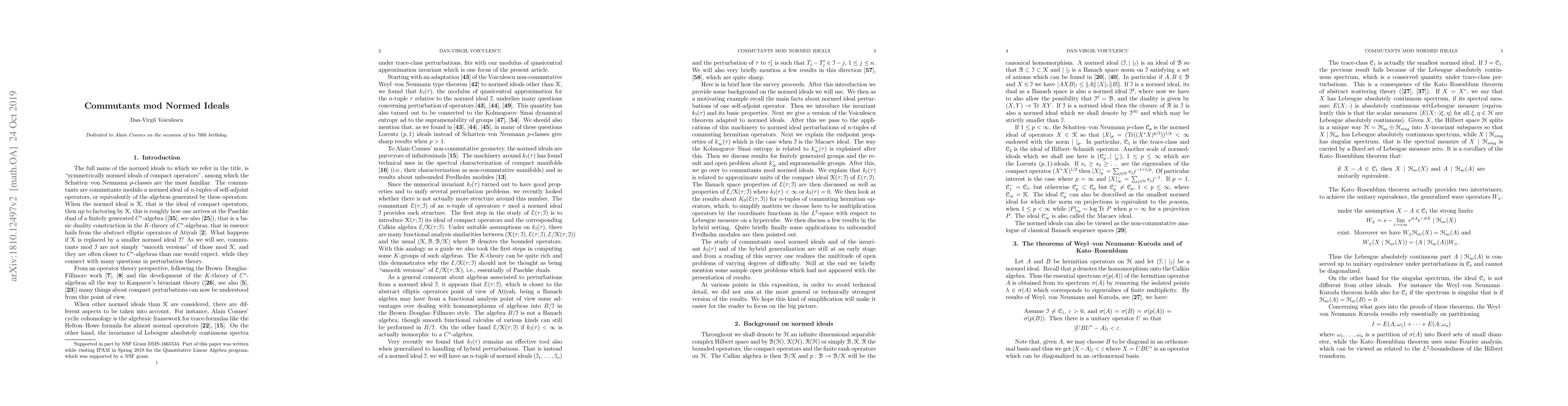 We survey the operator algebras arising as commutants modulo normed ideals of finite sets of hermitian operators and connections to perturbations of operators and noncommutative geometry.
