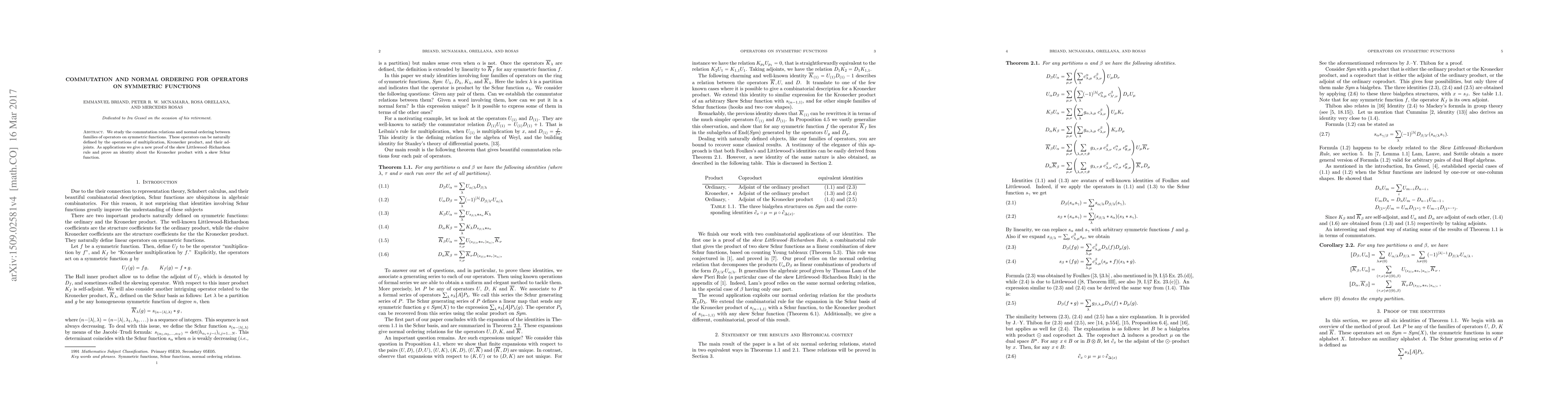 We study the commutation relations and normal ordering between families of operators on symmetric functions. These operators can be naturally defined by the operations of multiplication, Kronecker product, and their adjoints. As applications we give a new proof of the skew Littlewood-Richardson rule and prove an identity about the Kronecker product with a skew Schur function.
