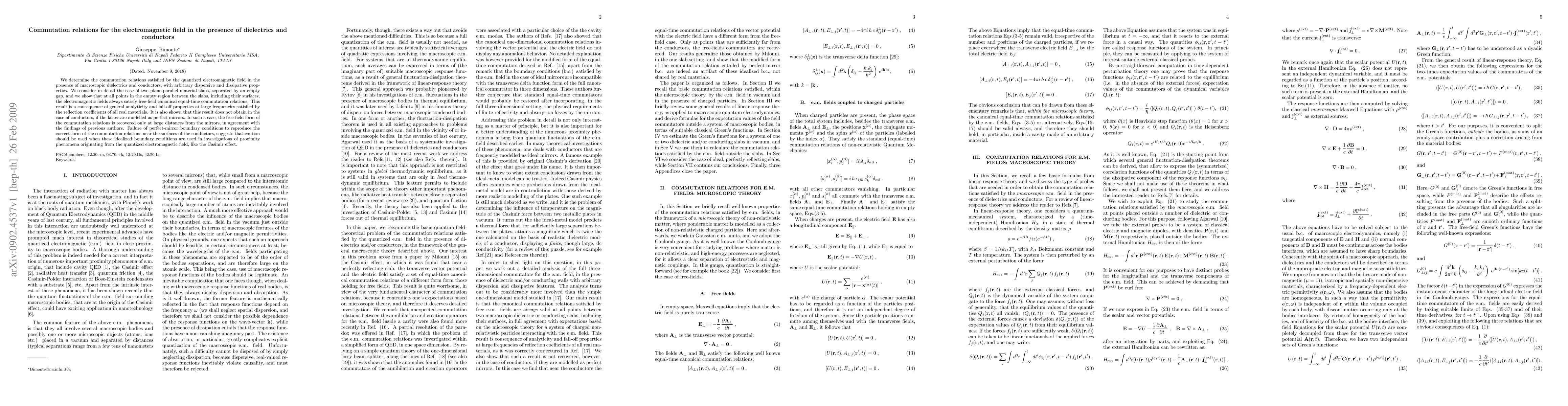This paper determines the commutation relations for the quantized electromagnetic field in dielectrics and conductors, showing that free-field relations hold in dielectrics but not in perfect conductors. Caution is advised when using idealized boundary conditions in proximity phenomena studies.