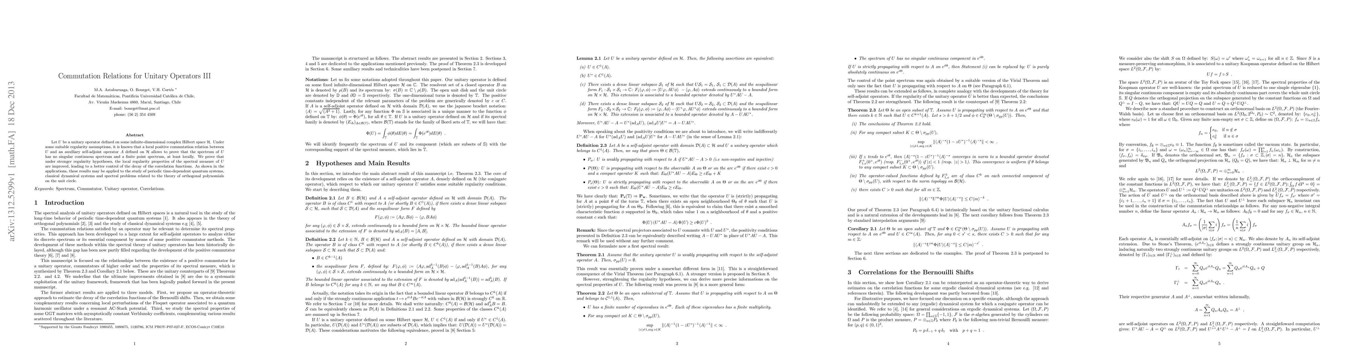 This paper investigates the commutation relations between unitary operators and self-adjoint operators in infinite-dimensional Hilbert spaces, proving that stronger regularity conditions lead to improved spectral properties and better decay control for correlation functions. Applications include periodic quantum systems, classical dynamical systems, and spectral problems related to orthogonal polynomials.