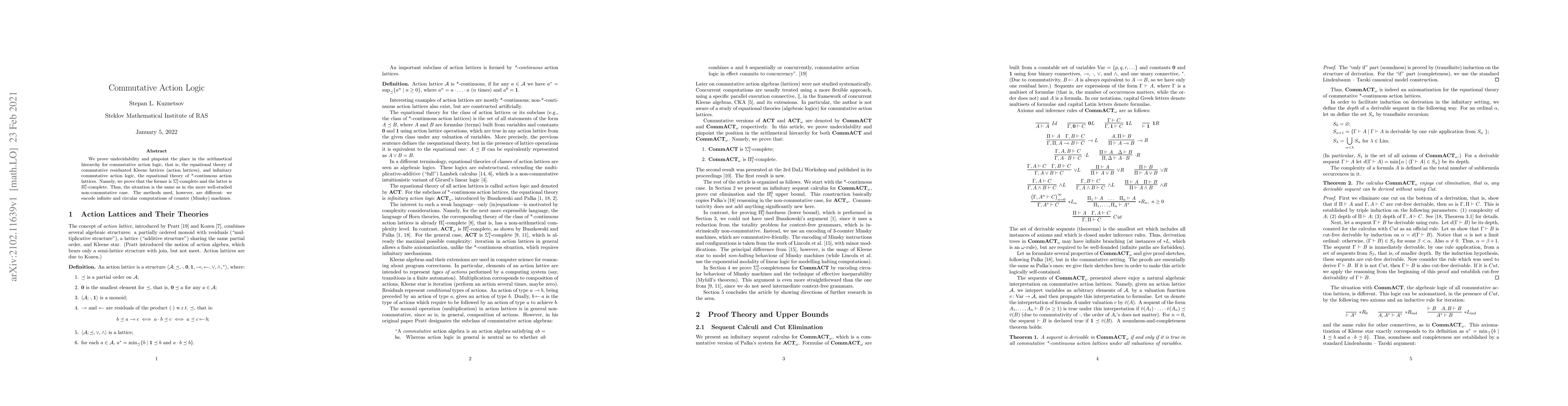 We prove undecidability and pinpoint the place in the arithmetical hierarchy for commutative action logic, that is, the equational theory of commutative residuated Kleene lattices (action lattices), and infinitary commutative action logic, the equational theory of *-continuous action lattices. Namely, we prove that the former is $\Sigma_1^0$-complete and the latter is $\Pi_1^0$-complete. Thus, the situation is the same as in the more well-studied non-commutative case. The methods used, however, are different: we encode infinite and circular computations of counter (Minsky) machines.