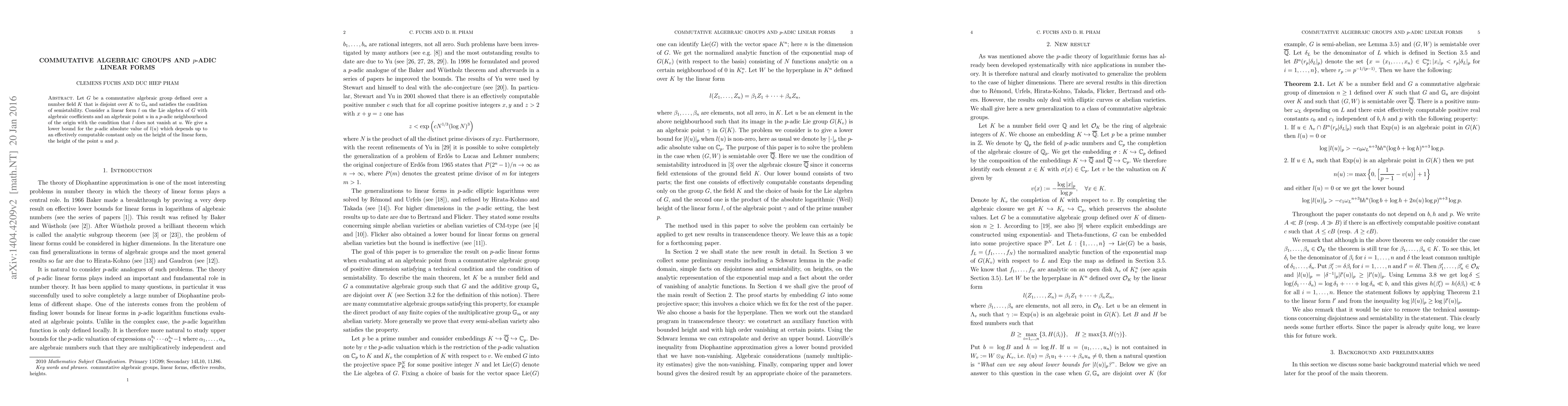 Researchers found a lower bound for the p-adic absolute value of a linear form evaluated at a point in a commutative algebraic group, depending on the form's height and the point's height, with an effective constant factor only.