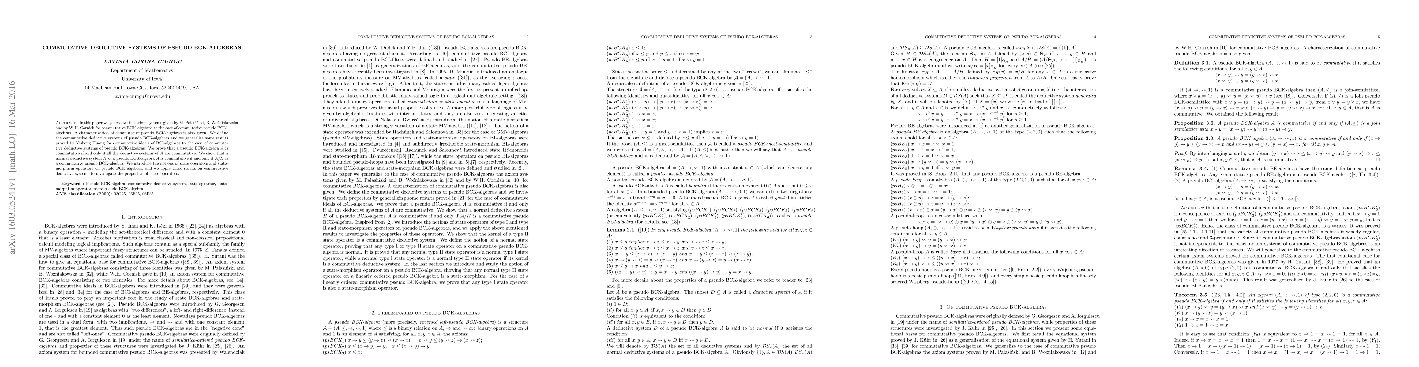 This paper generalizes axiom systems for commutative BCK-algebras to commutative pseudo BCK-algebras, characterizes them, and defines commutative deductive systems. It proves that a pseudo BCK-algebra is commutative if all its deductive systems are commutative and explores properties of state operators and state-morphism operators on these algebras.