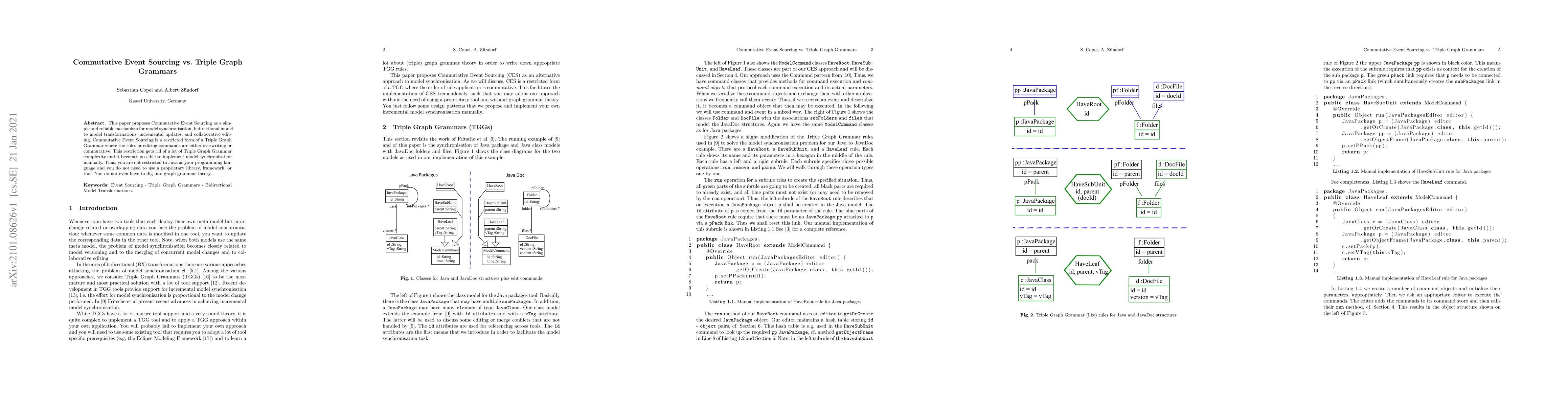 This paper proposes Commutative Event Sourcing as a simple and reliable mechanism for model synchronisation, bidirectional model to model transformations, incremental updates, and collaborative editing. Commutative Event Sourcing is a restricted form of a Triple Graph Grammar where the rules or editing commands are either overwriting or commutative. This restriction gets rid of a lot of Triple Graph Grammar complexity and it becomes possible to implement model synchronisation manually. Thus, you are not restricted to Java as your programming language and you do not need to use a proprietary library, framework, or tool. You do not even have to dig into graph grammar theory.
