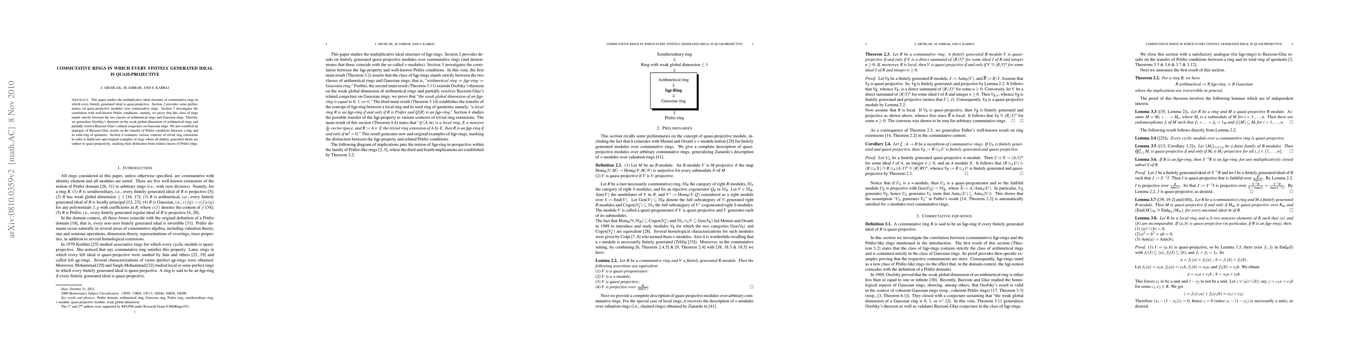 This paper explores commutative rings where every finitely generated ideal is quasi-projective, proving these rings lie between arithmetical and Gaussian rings, and presenting new examples of such rings via trivial extensions.
