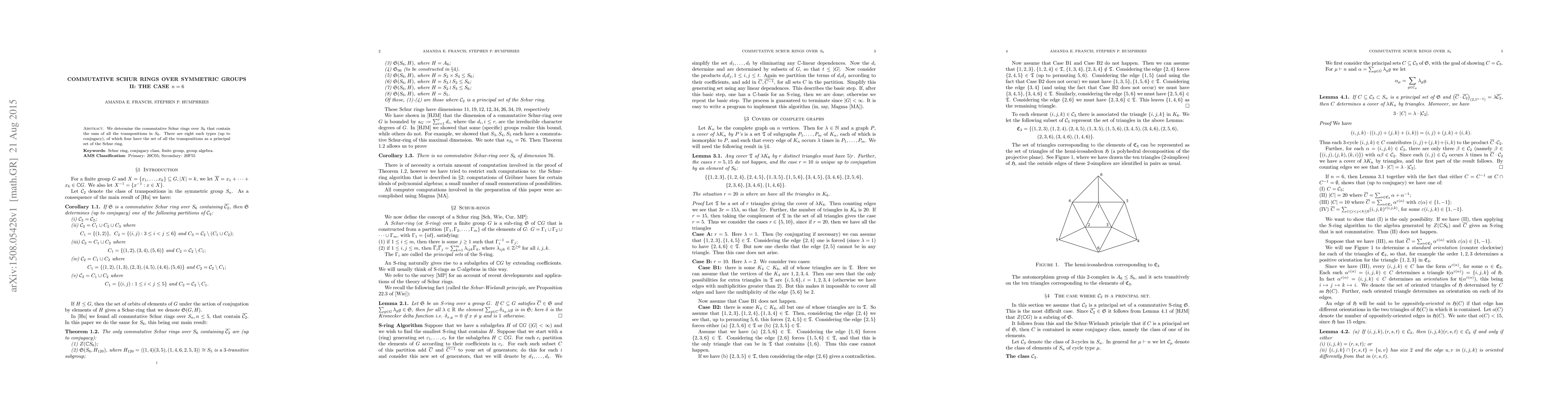 We determine the commutative Schur rings over $S_6$ that contain the sum of all the transpositions in $S_6$. There are eight such types (up to conjugacy), of which four have the set of all the transpositions as a principal set of the Schur ring.