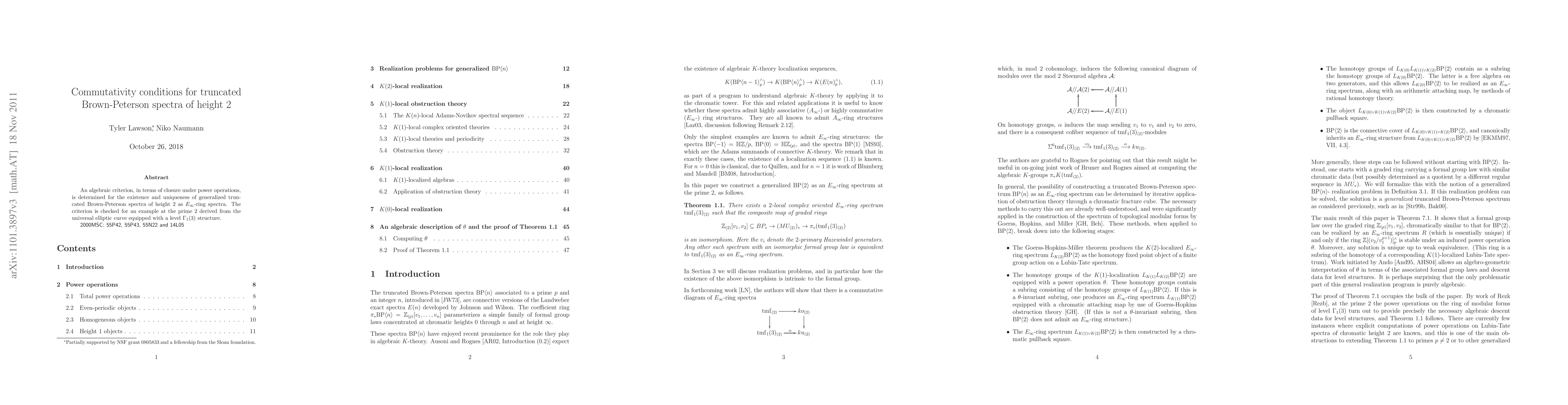 An algebraic criterion, in terms of closure under power operations, is determined for the existence and uniqueness of generalized trun- cated Brown-Peterson spectra of height 2 as E_\infty-ring spectra. The criterion is checked for an example at the prime 2 derived from the universal elliptic curve equipped with a level \Gamma_1(3)-structure.