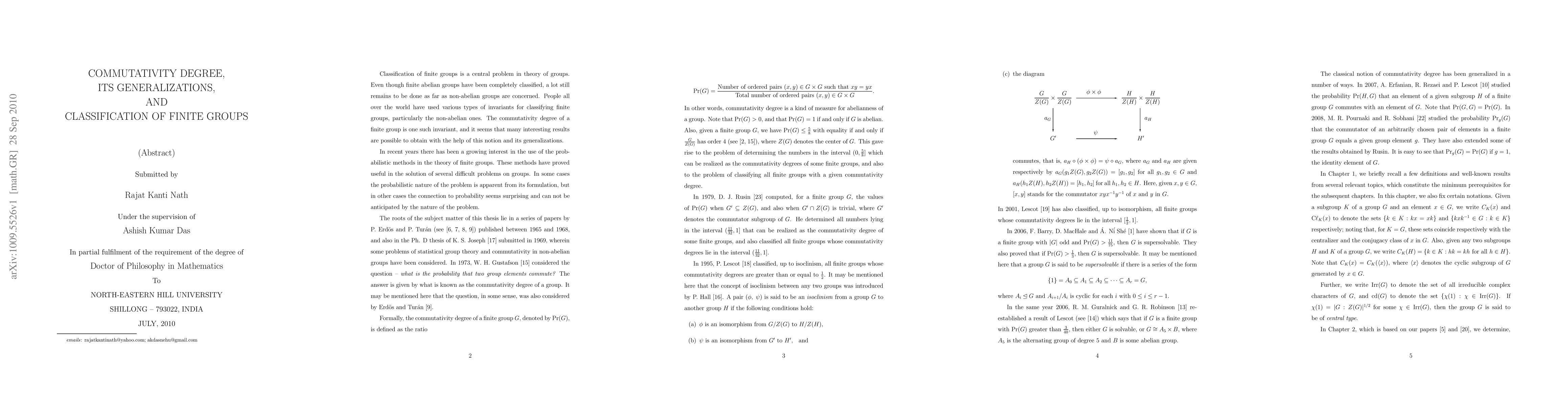 Summary: This paper introduces new findings on the commutativity degree of finite groups, presenting novel results without proofs. It also explores generalizations and classifications related to these degrees.