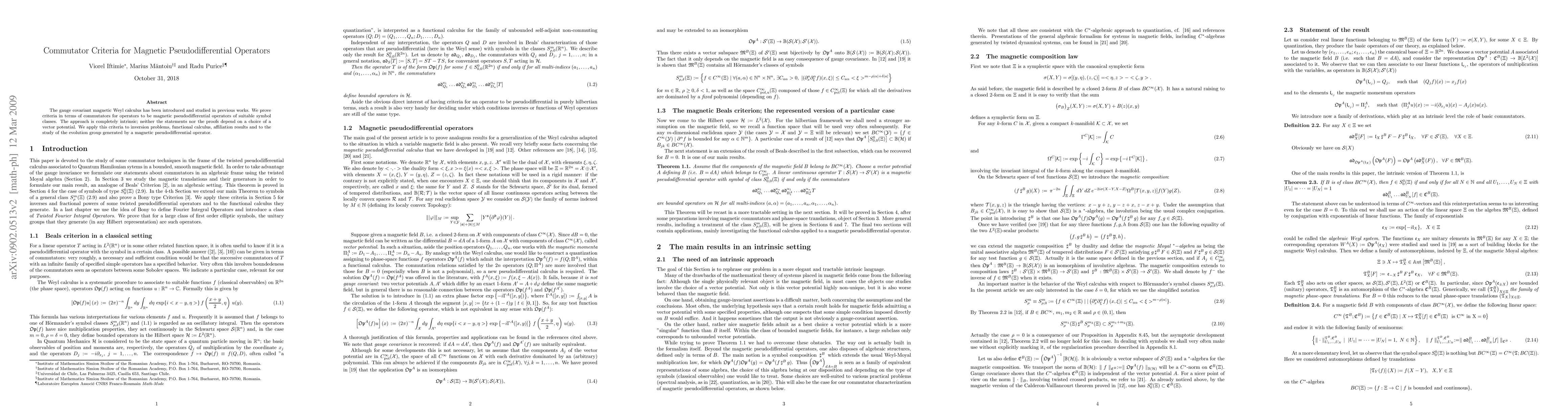This paper introduces criteria for magnetic pseudo-differential operators based on commutators, providing a gauge-invariant approach that applies to inversion problems, functional calculus, and evolution groups.