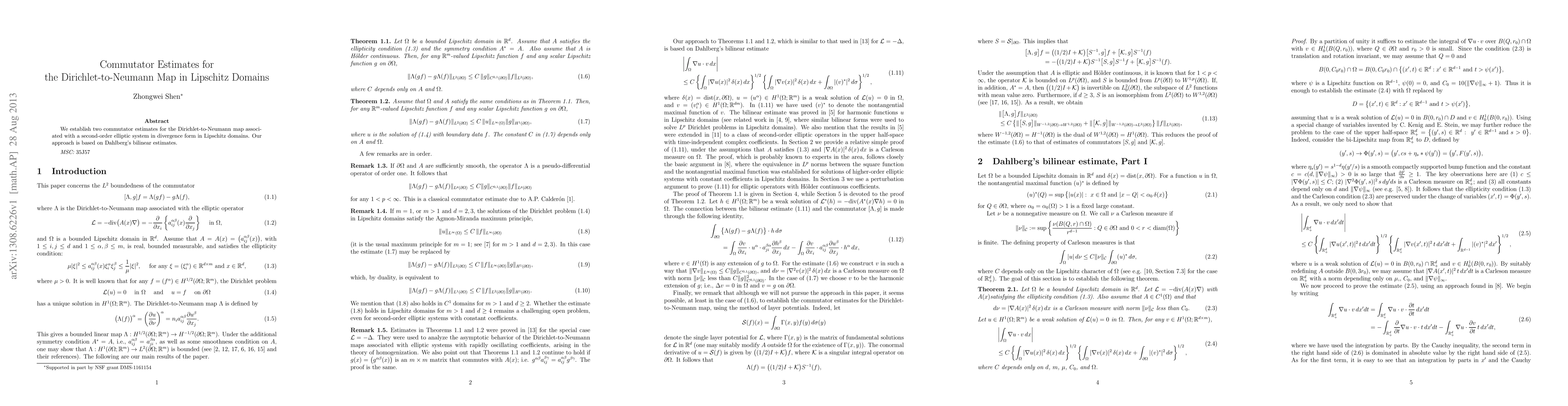 This paper provides two commutator estimates for the Dirichlet-to-Neumann map in Lipschitz domains using Dahlberg's bilinear estimates for a second-order elliptic system in divergence form. The results enhance understanding of the behavior of the map in such geometric settings.