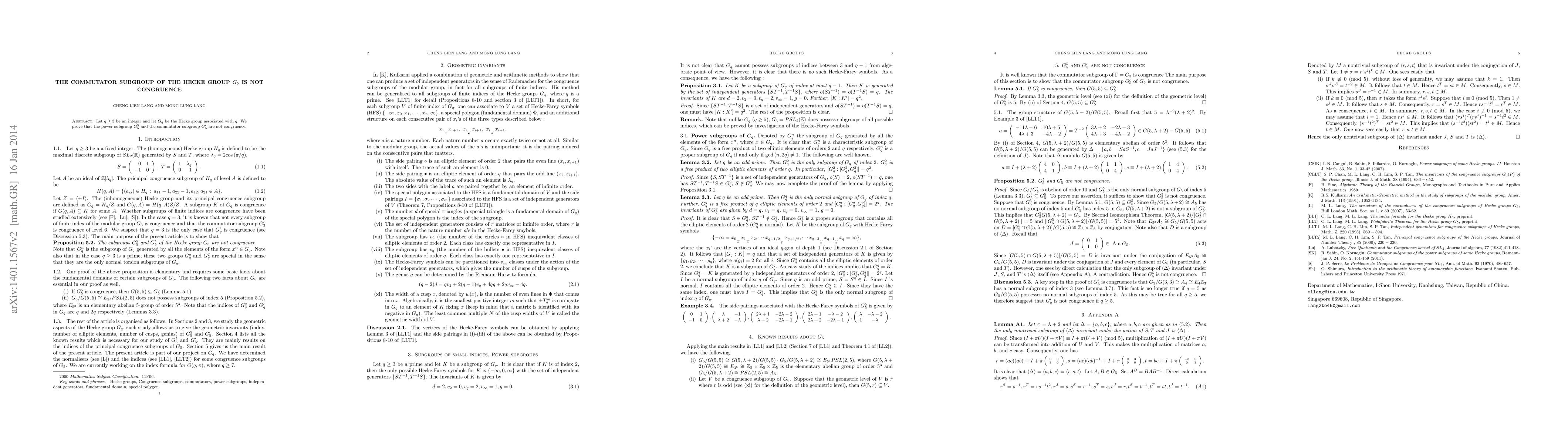 We prove that the power subgroup $G_5^5$ and the commutator subgroup $G_5'$ of the Hecke group $G_5$ are not congruence.