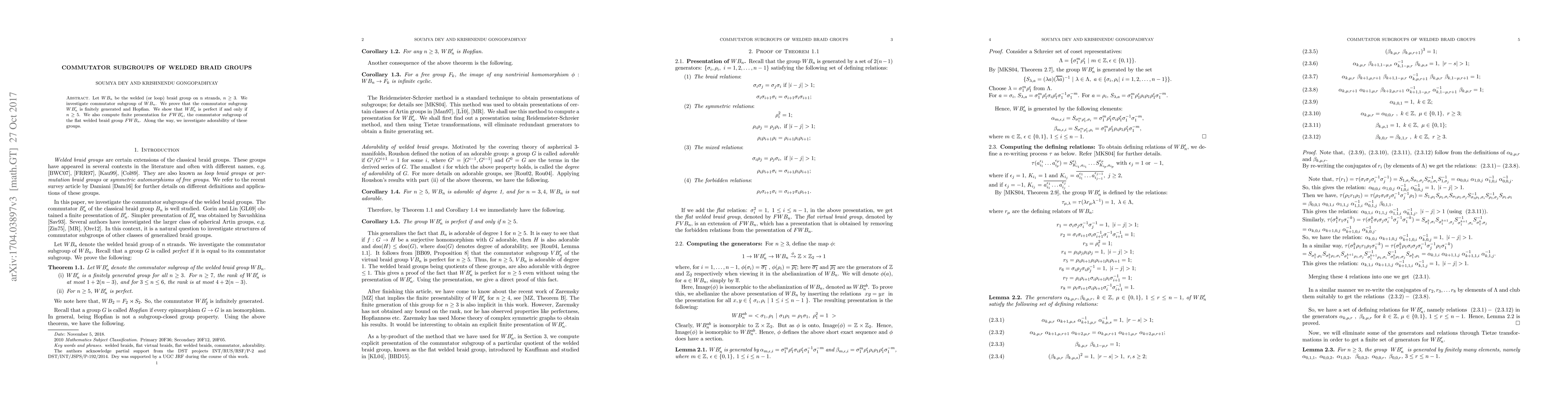 Let $WB_n$ be the welded (or loop) braid group on n strands, $n \geq 3$. We investigate commutator subgroup of $WB_n$. We prove that the commutator subgroup $WB_n'$ is finitely generated and Hopfian. We show that $WB_n'$ is perfect if and only if $n \geq 5$. We also compute finite presentation for $FWB_n'$, the commutator subgroup of the flat welded braid group $FWB_n$. Along the way, we investigate adorability of these groups.