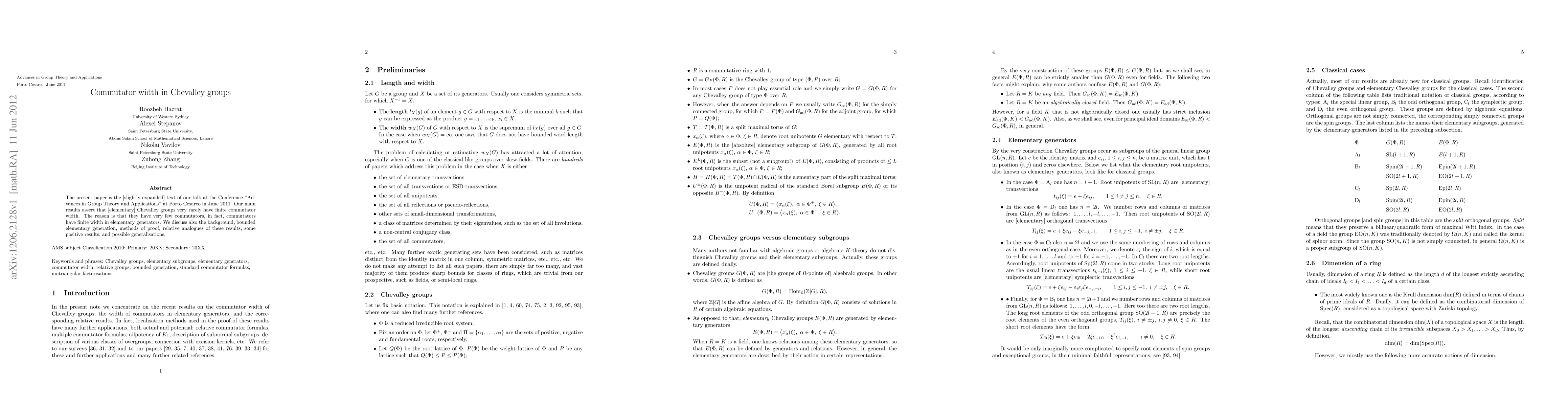 This paper examines commutator width in Chevalley groups, finding that they seldom have finite commutator width due to their limited number of commutators. It also discusses related concepts, proof methods, and potential extensions of these findings.