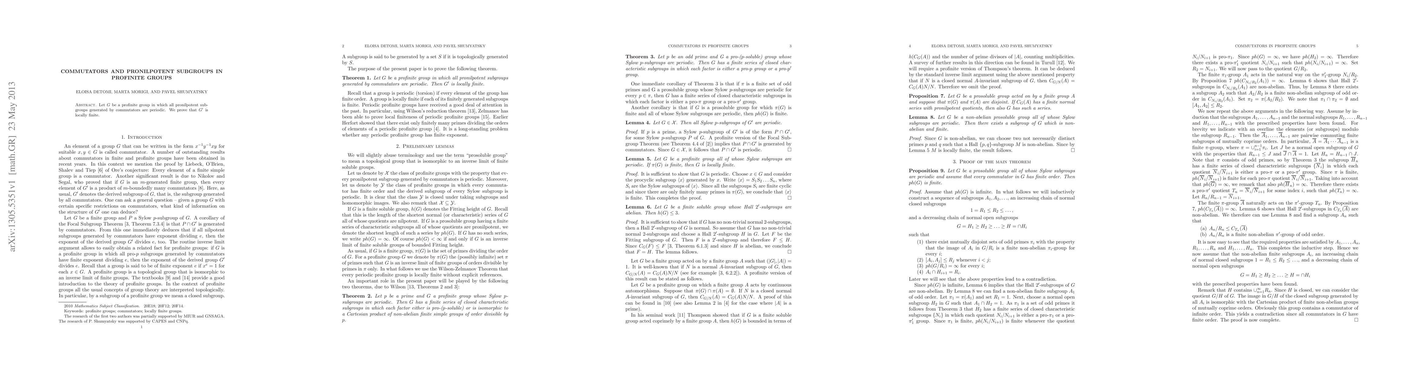 Summary: The paper proves that if a profinite group G has the property that all pronilpotent subgroups generated by commutators are periodic, then the derived subgroup G' is locally finite. This establishes a connection between commutator-generated pronilpotent subgroups and the local finiteness of the derived subgroup.