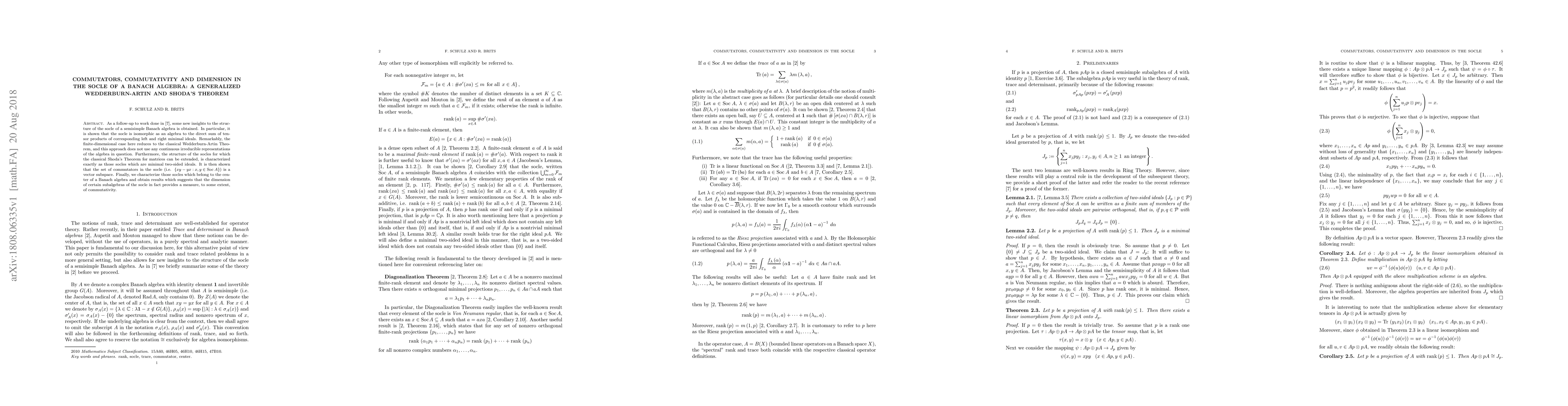 This paper explores the structure of the socle in semisimple Banach algebras, showing it is isomorphic to a direct sum of tensor products of minimal ideals, extending classical Wedderburn-Artin and Shoda's Theorems without using continuous representations. It also characterizes the dimension of certain subalgebras in the socle as a measure of commutativity.