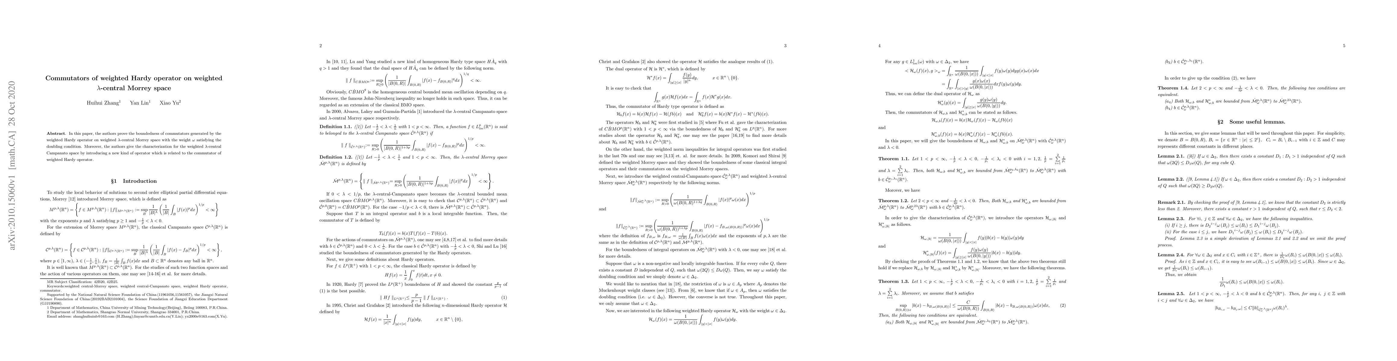 Summary: This paper establishes the boundedness of commutators from the weighted Hardy operator on weighted $\lambda$-central Morrey space under a doubling weight condition, and introduces a new operator to characterize the weighted $\lambda$-central Campanato space.