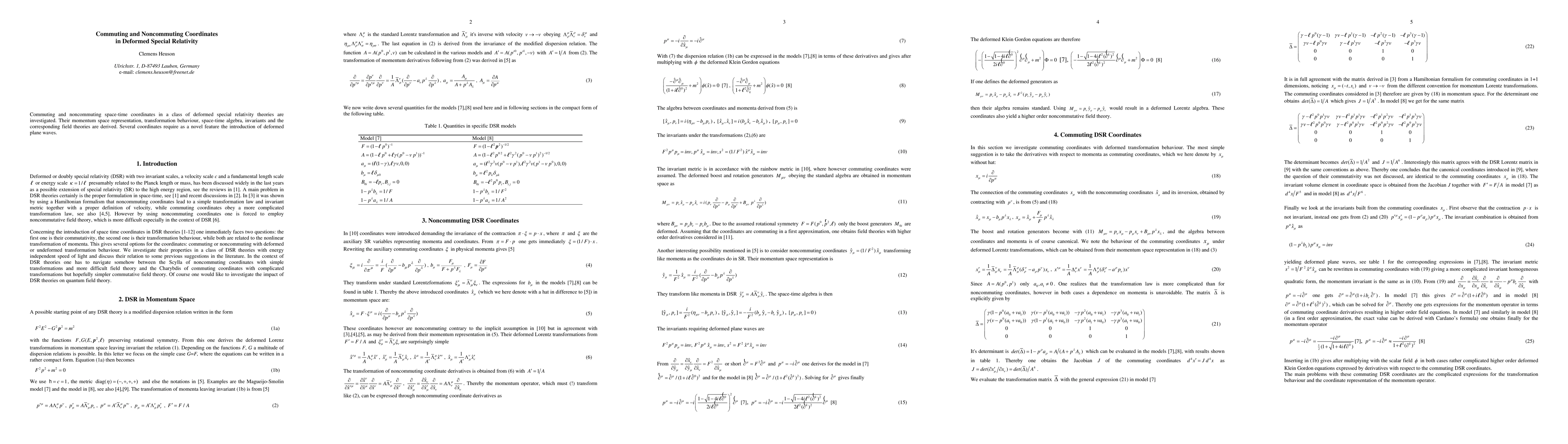 This paper explores the properties of commuting and noncommuting space-time coordinates within deformed special relativity frameworks, deriving their momentum space representation, transformation behavior, and space-time algebra, while introducing deformed plane waves as a novel feature.