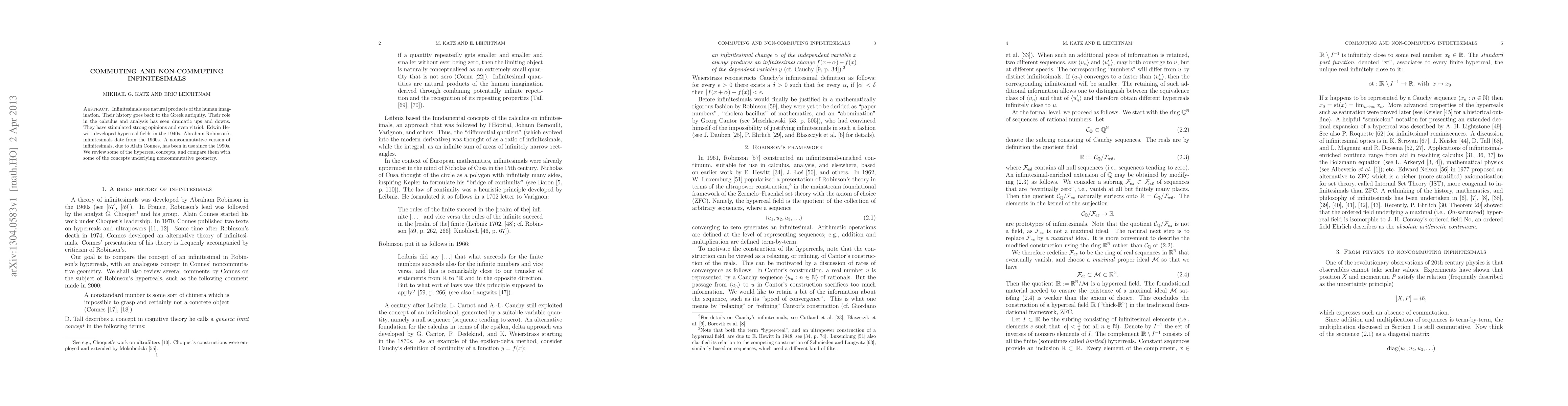 This paper reviews the history of infinitesimals in calculus and analysis, comparing hyperreal fields with noncommutative geometry, highlighting key developments since the 1940s.