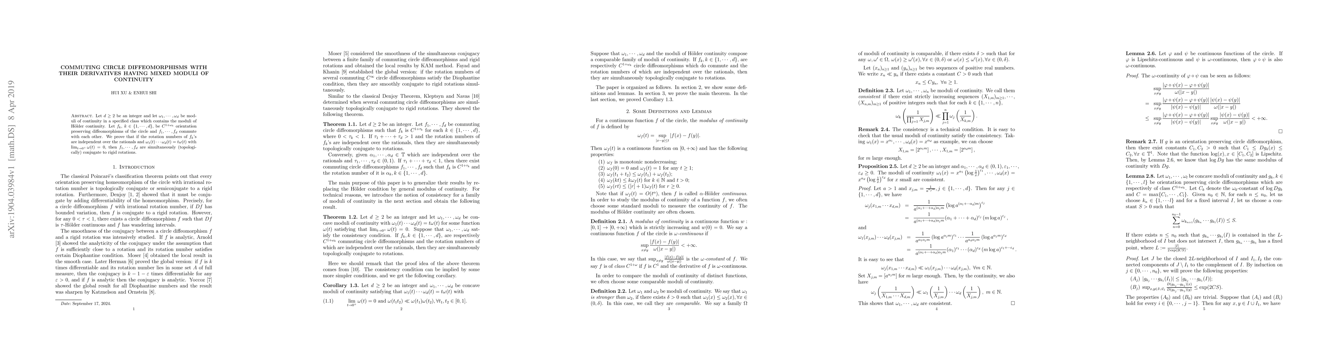 This paper proves that commuting circle diffeomorphisms with derivatives having mixed moduli of continuity are simultaneously conjugate to rigid rotations if their rotation numbers are rationally independent and the product of the moduli converges to zero as $t$ approaches zero.