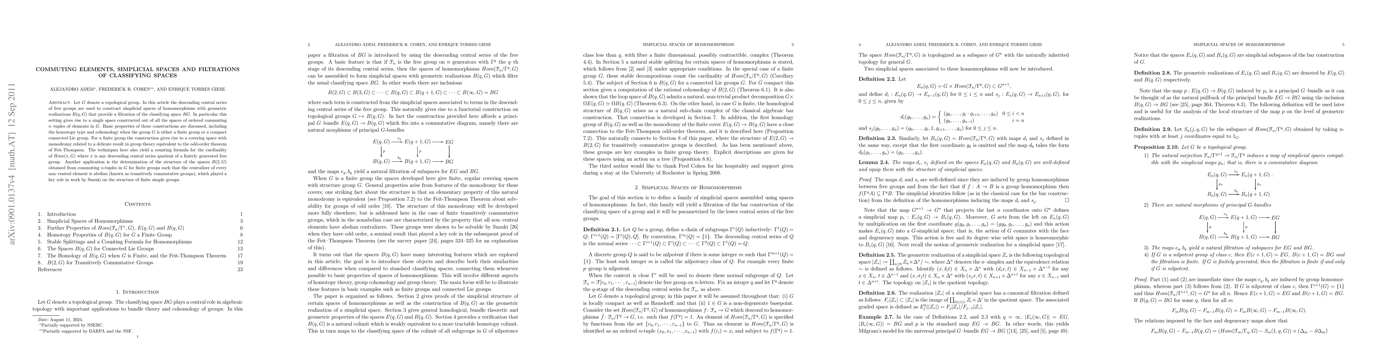 Two-line summary: The paper constructs simplicial spaces B(q,G) for each integer q>1 and topological group G that filter the classifying space BG, with particular focus on B(2,G) formed from n-tuples of commuting elements in G. The homotopy properties of these spaces for finite groups and their cohomology for compact Lie groups are analyzed, along with detailed descriptions of B(2,G) for transitively commutative groups.