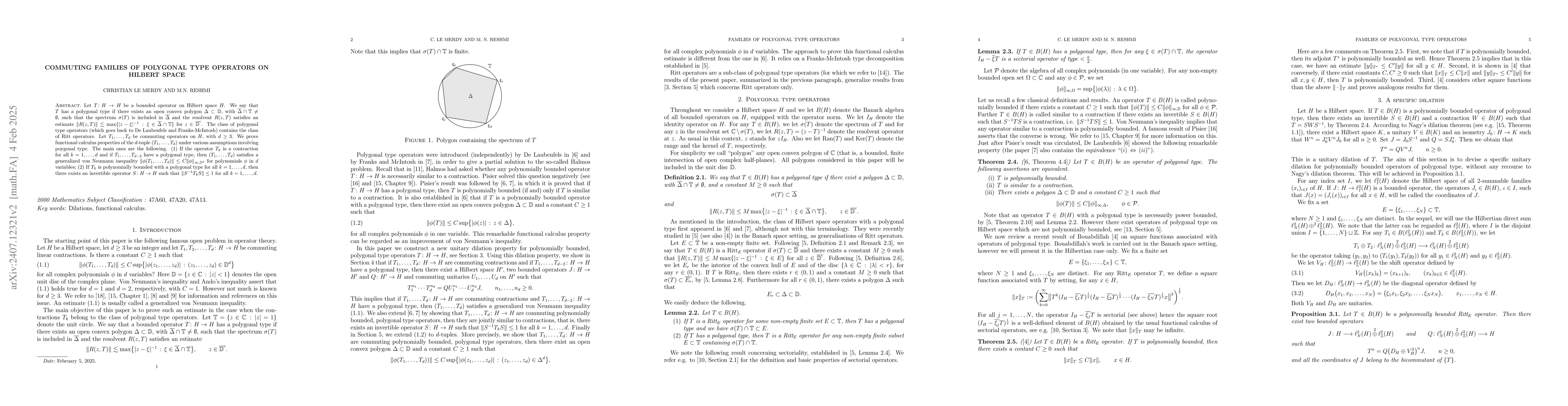 This paper investigates commuting families of bounded operators on Hilbert space that possess a "polygonal type." It proves functional calculus properties for such families, including a generalized von Neumann inequality under certain contraction conditions and an invertible operator bound when all operators are polynomially bounded with polygonal types.