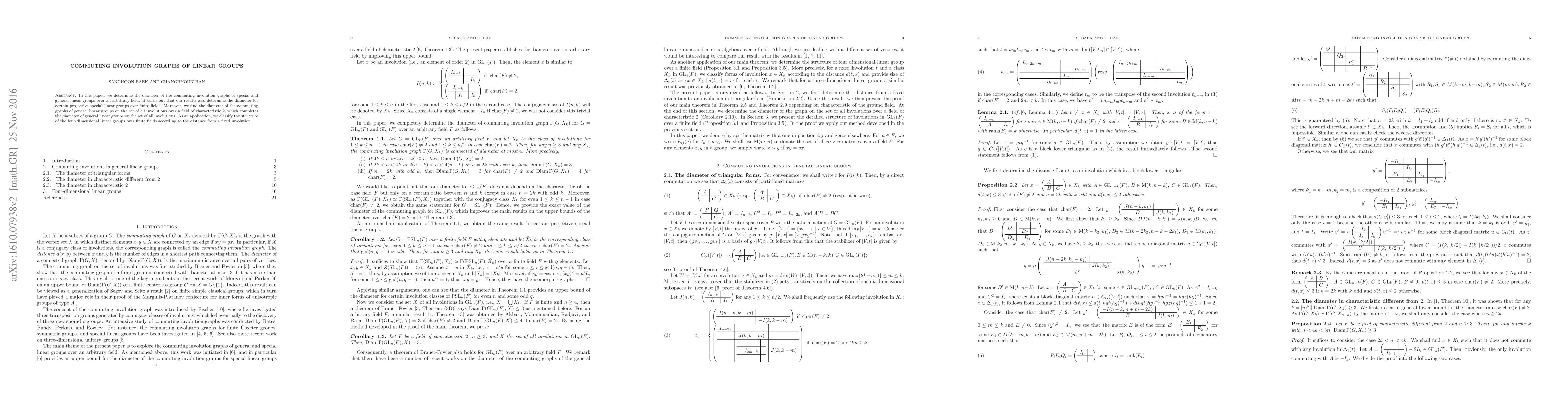 This paper determines the diameter of commuting involution graphs for special and general linear groups over arbitrary fields, extending results to certain projective special linear groups and completing the diameter analysis for general linear groups in characteristic 2. It also classifies four-dimensional linear groups over finite fields based on their distance from a fixed involution.