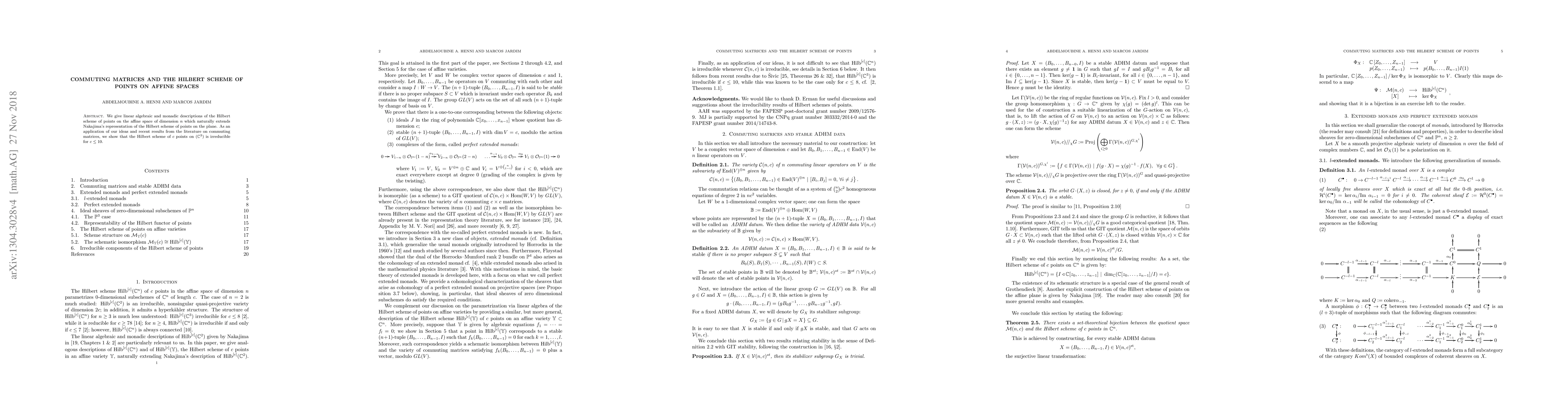 This paper provides linear algebraic and monadic descriptions of the Hilbert scheme of points on affine spaces, extending Nakajima's representation. It applies recent results on commuting matrices to demonstrate the irreducibility of the Hilbert scheme of $c$ points on $\C^3$ for $c \le 10$.