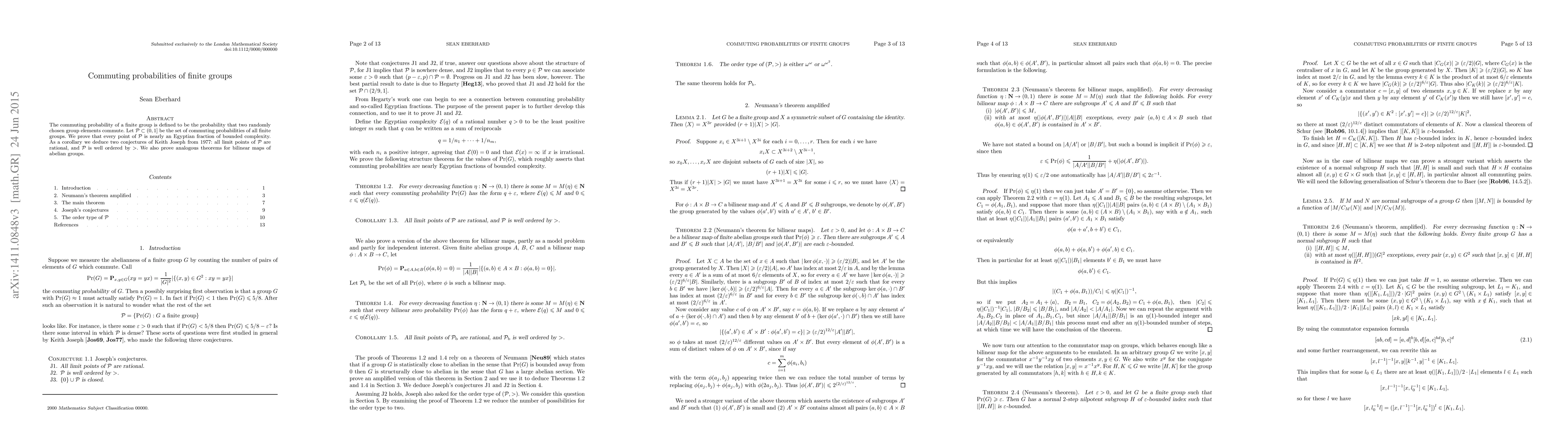 The paper establishes that the commuting probabilities of finite groups can be expressed as nearly Egyptian fractions of bounded complexity, proving that all limit points are rational and that the set is well ordered. It also extends these results to bilinear maps of abelian groups.