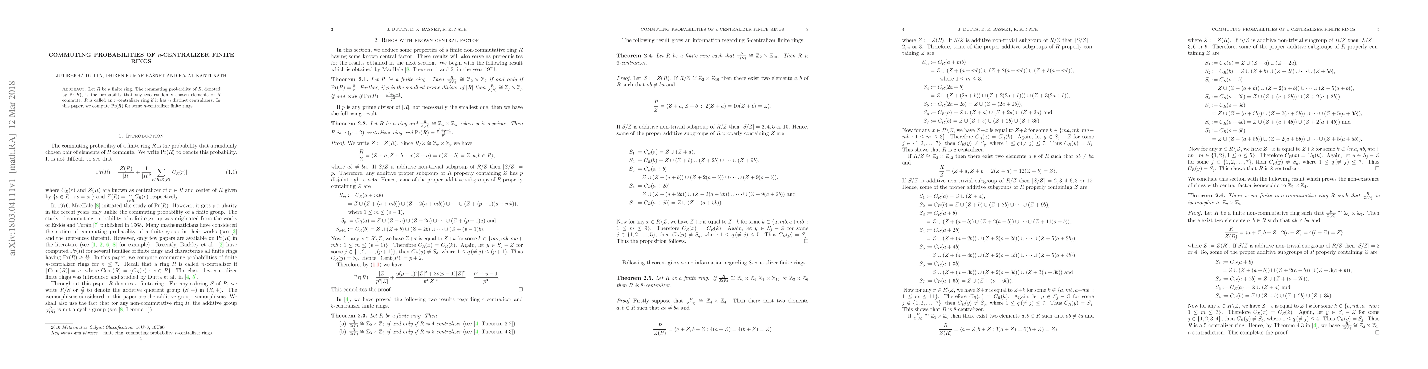 This paper calculates the commuting probability $\Pr(R)$ for finite $n$-centralizer rings, where $\Pr(R)$ is the likelihood that two randomly selected elements from $R$ commute. It focuses on specific $n$-centralizer finite rings to determine their commuting probabilities.