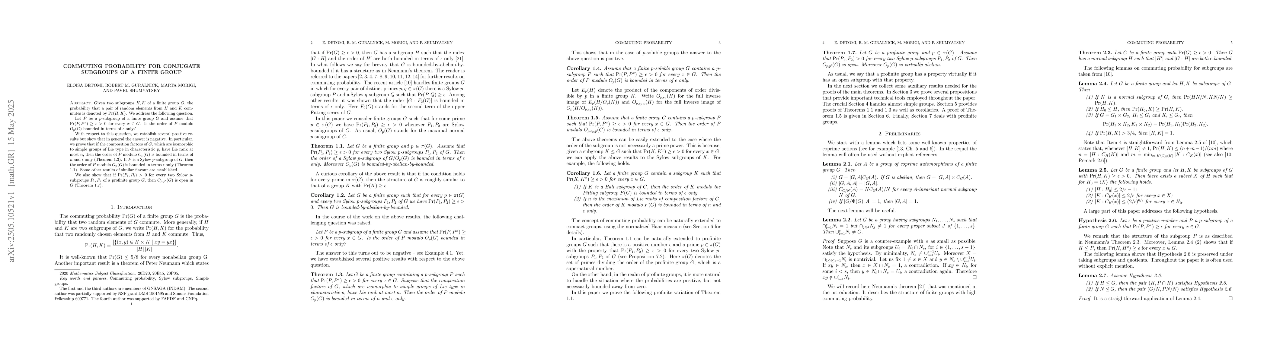 The paper explores the commuting probability for conjugate subgroups of a finite group, using group-theoretic methods and properties of p-subgroups.