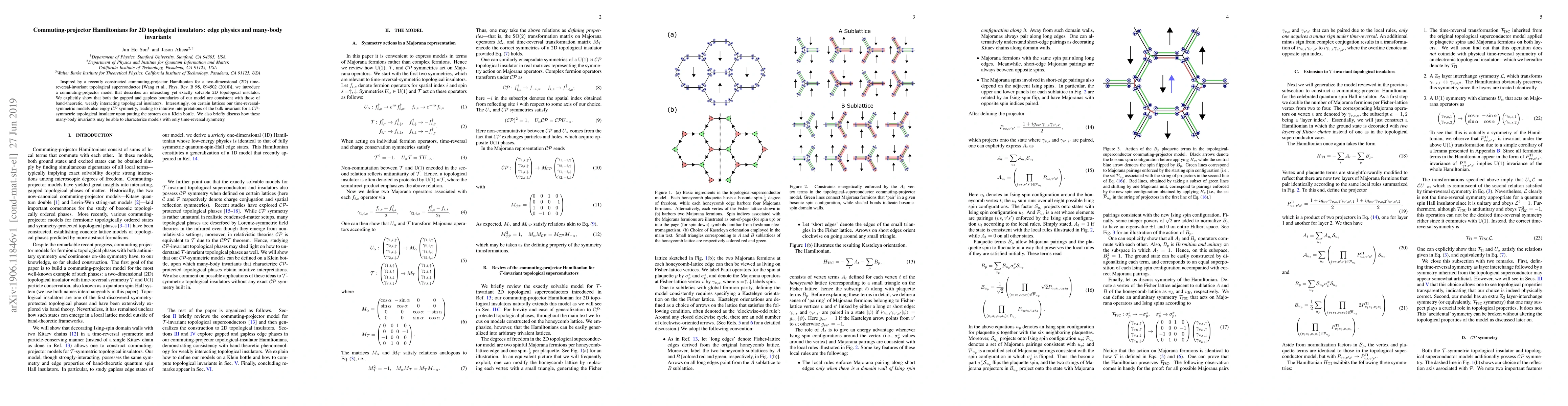 This paper introduces a commuting-projector Hamiltonian for a 2D topological insulator, demonstrating that its edge physics aligns with band-theoretic models. It also explores $\mathcal{CP}$ symmetry in certain lattices, providing insights into bulk invariants for $\mathcal{CP}$-symmetric topological insulators.